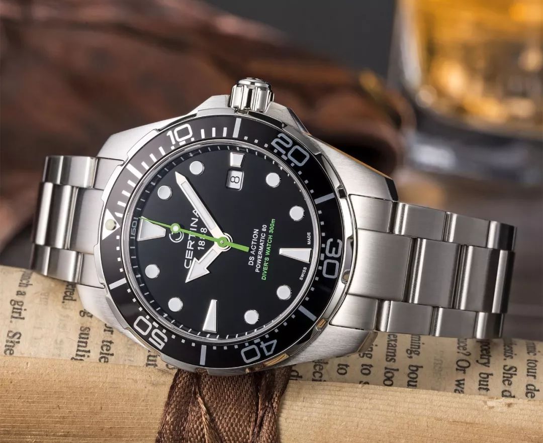 43mm表盘,背部搭载DAV 3021机芯,黑色表盘采用了条纹设计,银色条形时标清晰醒目,300米防水效果满足夏季潜水需求的同时,还配备日期显示。就算你没机会去潜水,戴上它,你依然是黑夜里最闪耀的那条仔。