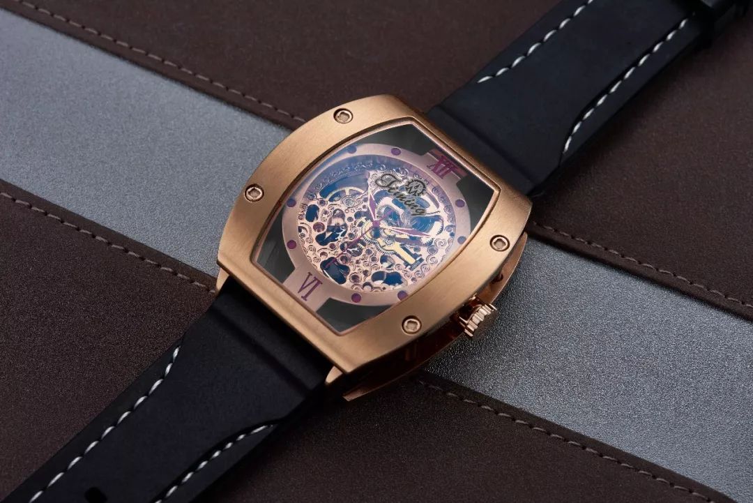 该款腕表选用个性PVD镀玫瑰金酒桶表壳搭配经典推拉式纹路防滑表冠,就如古典与现代的激励碰撞。精美的镂空设计,向佩戴者展现出精美HZ2189玫瑰金机芯那份独特的奢华感。,