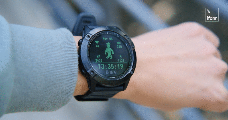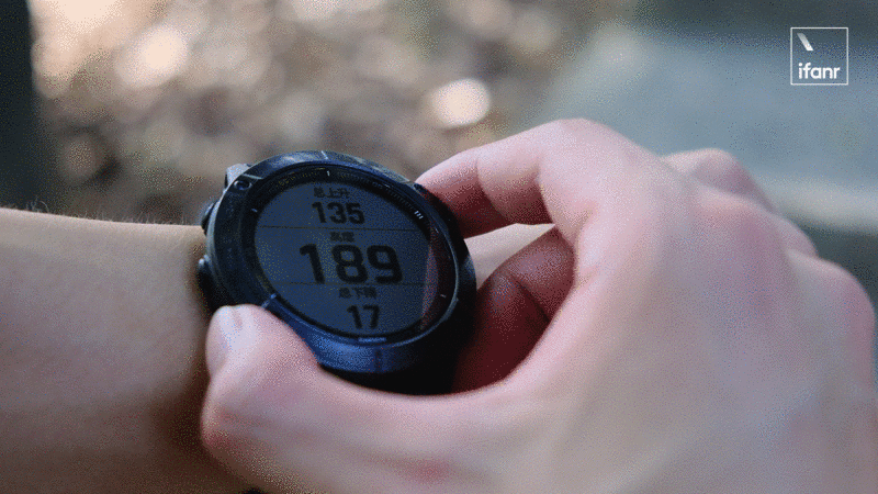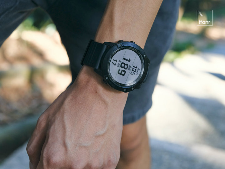 由于使用了墨水屏,所以 Fenix 6X Pro 可以做到永不熄屏,始终保持在你所停留的画面处,而且和 kindle 那种长期固定画面的、只有黑白两色的不同,这只玩意儿的画面是可以始终保持变化的,例如时钟读秒、运动数据的实时更新等。