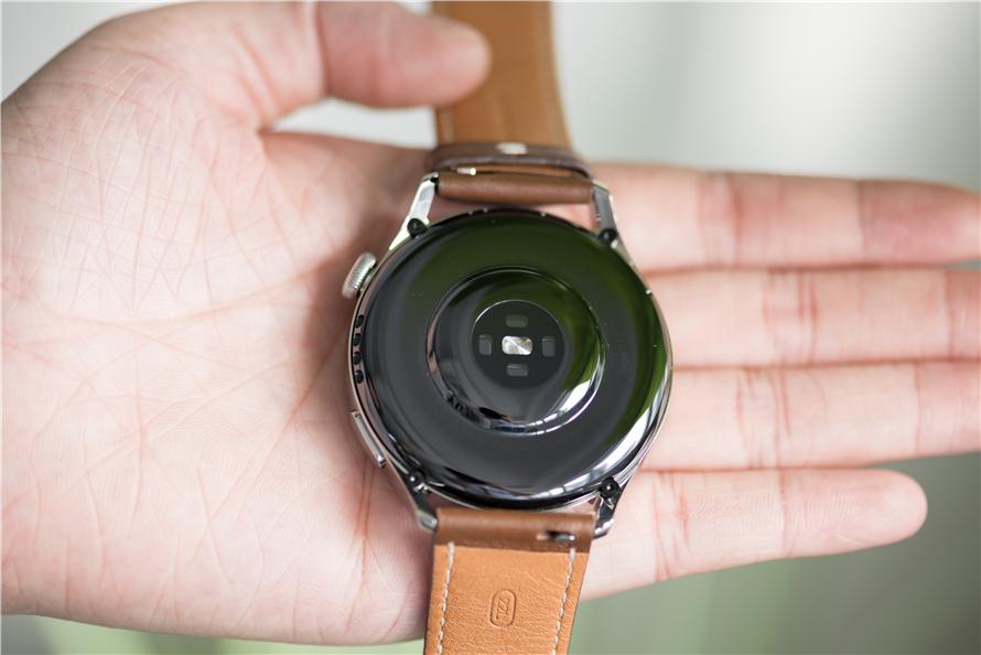 我们手里这款HUAWEI WATCH 3配备的是棕色真皮表带,46mm表盘,总体来看会更加适合男性佩戴。棕色真皮表带的质感还不错,软硬适中,第一次佩戴也没有不适感。另外表带的拆卸也比较简单,在与手表的连接处轻推按键即可,另外华为官方还提供了Easy Fit舒适系列表带,有多种颜色多种款式可选,售价199元。