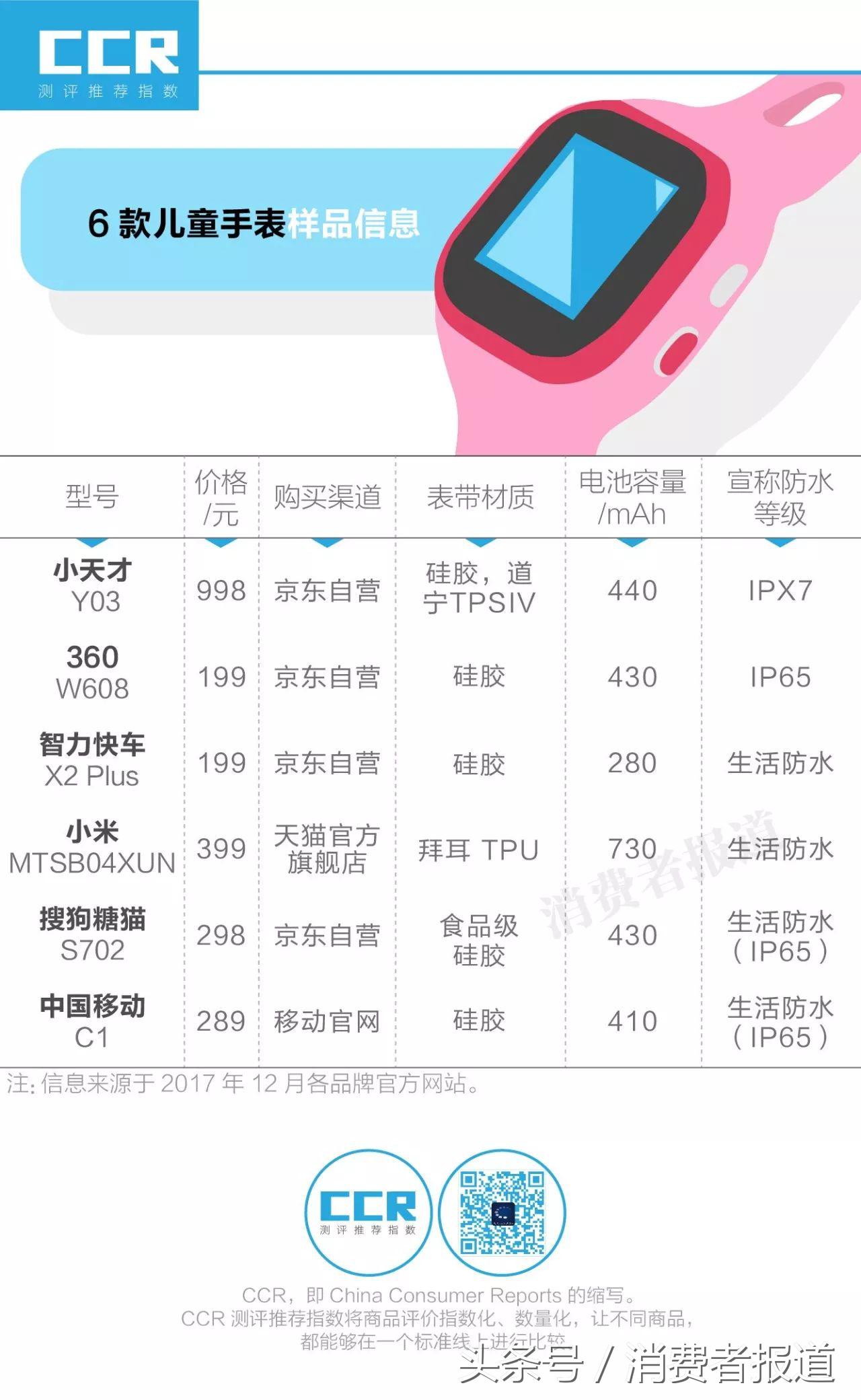 带着家长们的问题,2017年11月,《消费者报道》向第三方检测机构送检了小天才、360、小米、搜狗糖猫、中国移动和智力快车等6款市面热销的儿童电话手表,并参照相关标准,对表带和电池安全进行了测试。