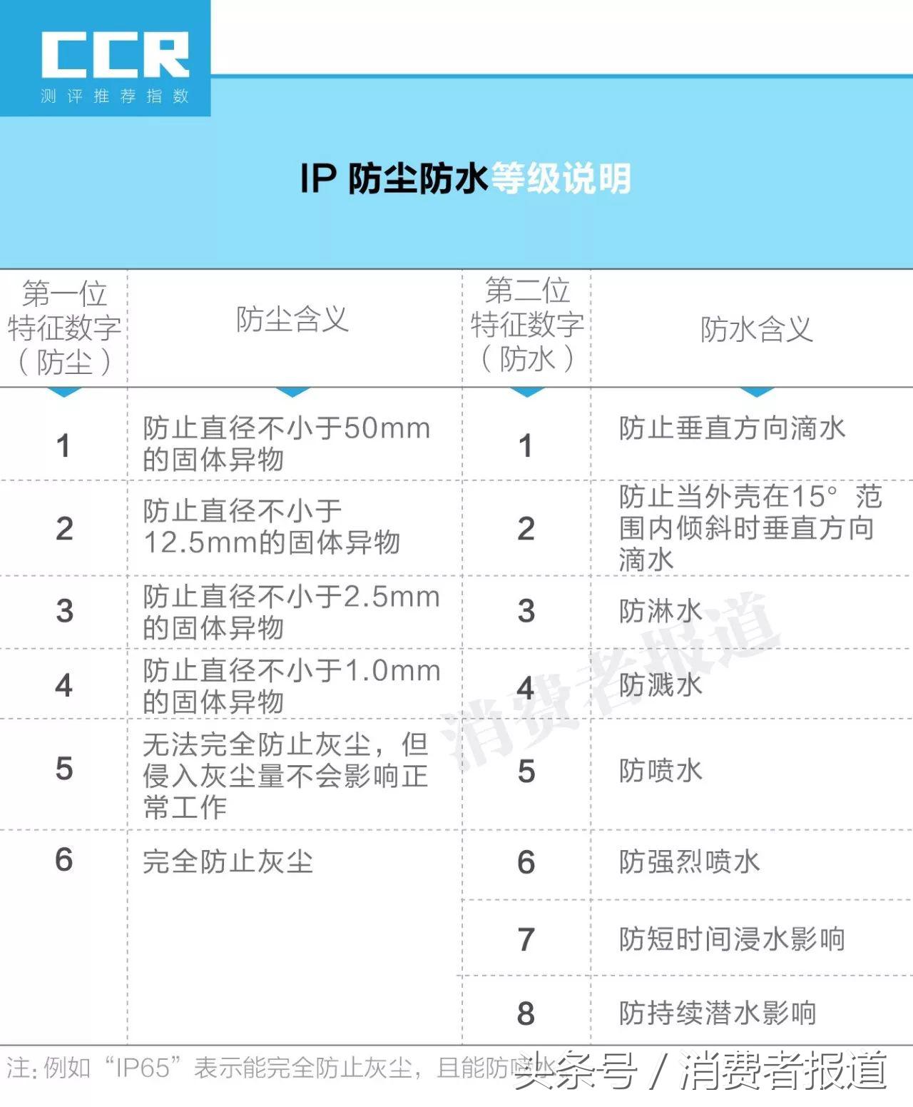 值得一提的是,市面上有部分产品宣称“生活防水”这个概念,但本刊并未在国家标准中查询到“生活防水”这个等级,所以建议消费者优先选择有IP防水认证标称的产品。