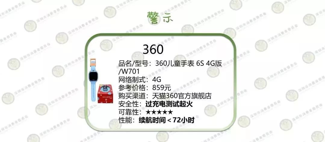 ② 360儿童手表样品在电池过充电测试中出现起火现象,有安全隐患。