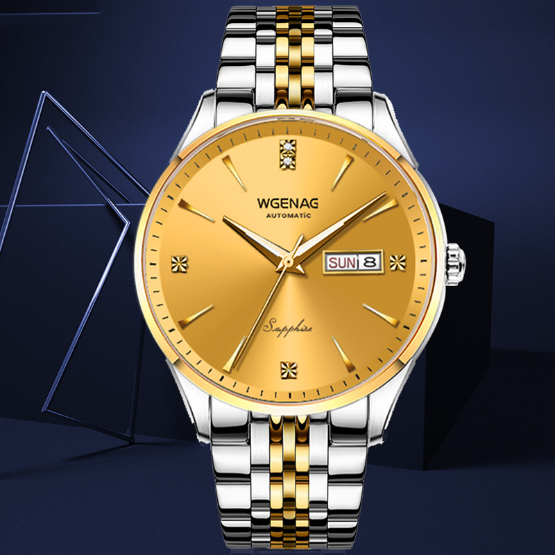 瓦格纳WG6011腕表有两色选择:蓝色与金色,设计格调以简约为主。