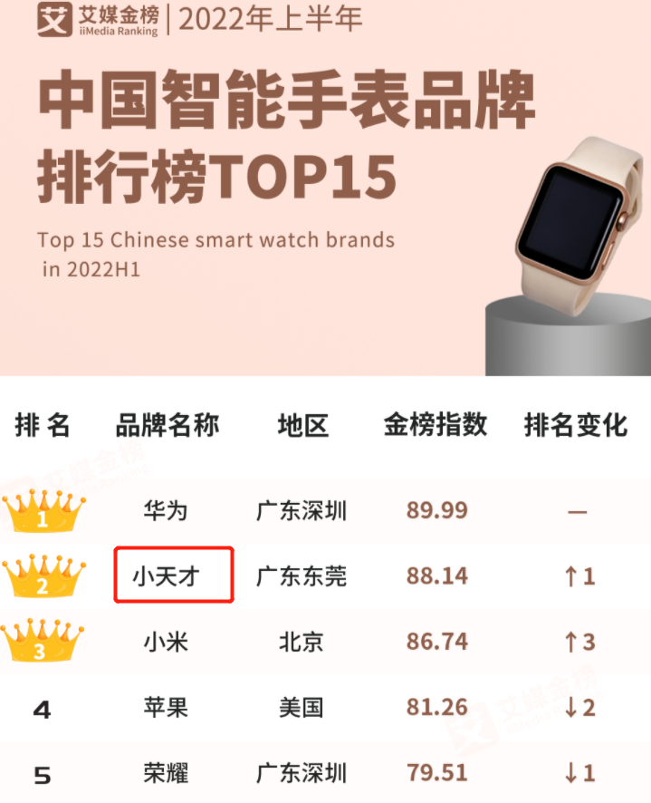 《2022年上半年中国智能手表品牌榜》