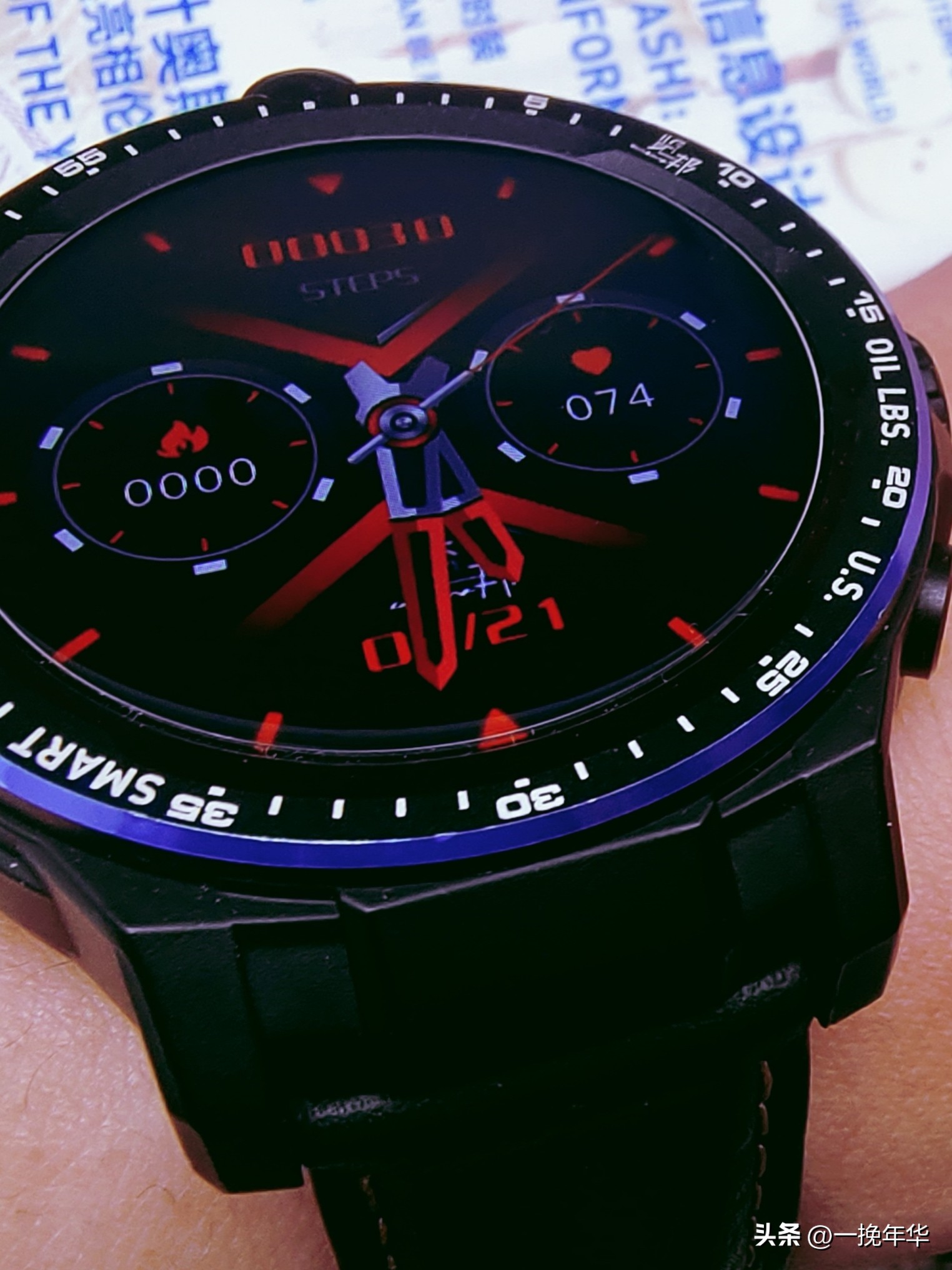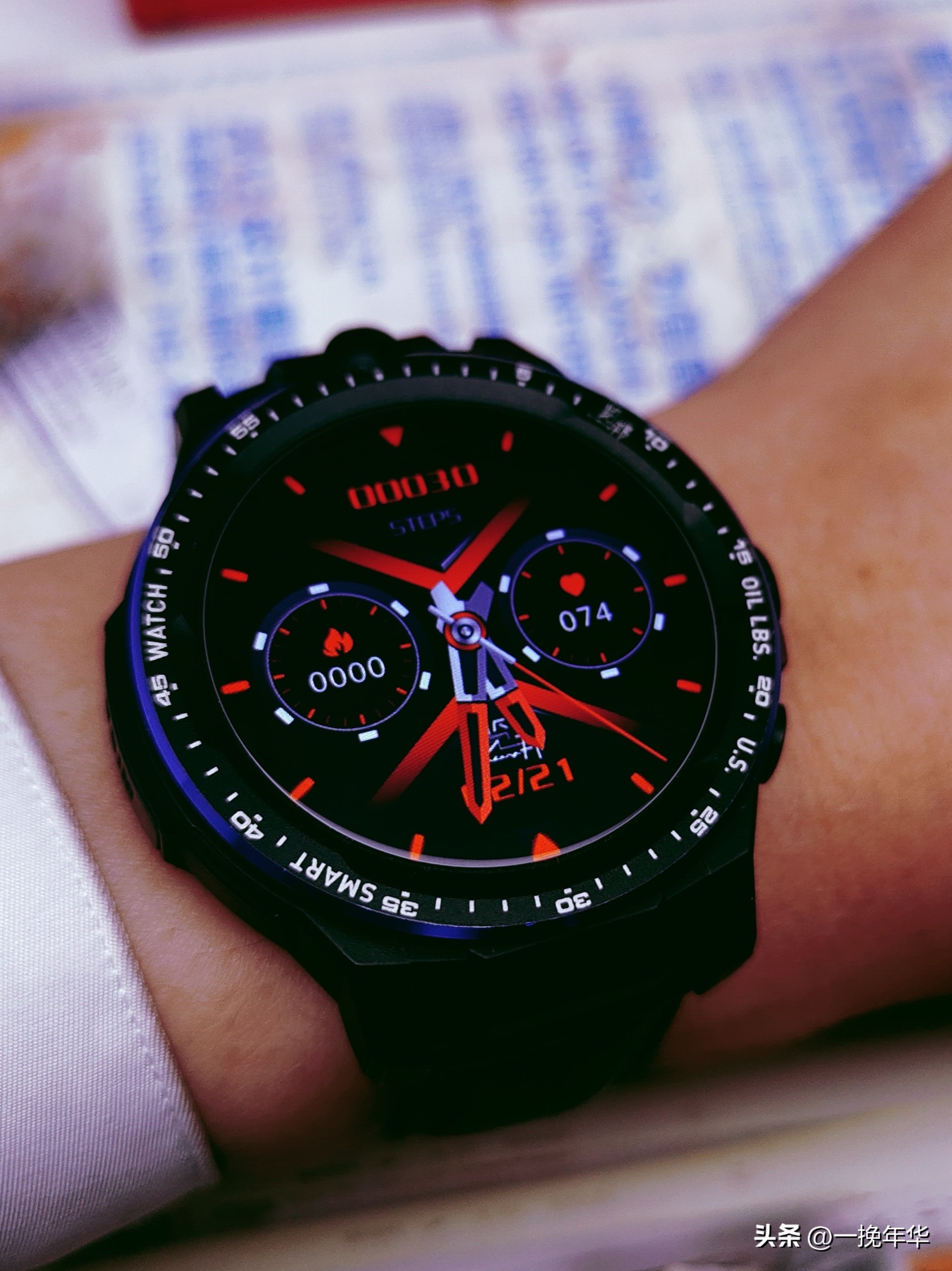 屏幕:屏幕采用1.43英寸的AMOLED超高清触控屏,屏幕分辨率达到了400*400,326的ppi,前摄像头200万像素支持快速人脸识别解锁,侧主摄800万像素超广角镜头,表壳采用复合耐塑材质,48mm的表圈在此基础上加入了DLC镀膜,坚硬耐磨,足以应付各种户外严苛条件,实测手表的重量为69g。