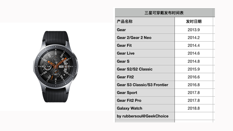 自从 2013 年发布首款 Gear 智能手表之后,三星就保持着以年为单位更新智能手表的规律(2014 年还更新了多款),新品发布时间则普遍集中在 8、9 两月。