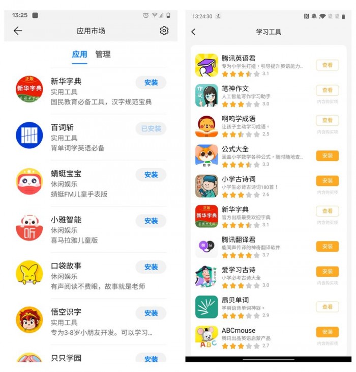 左:华为手表应用市场 | 右:小天才手表应用市场