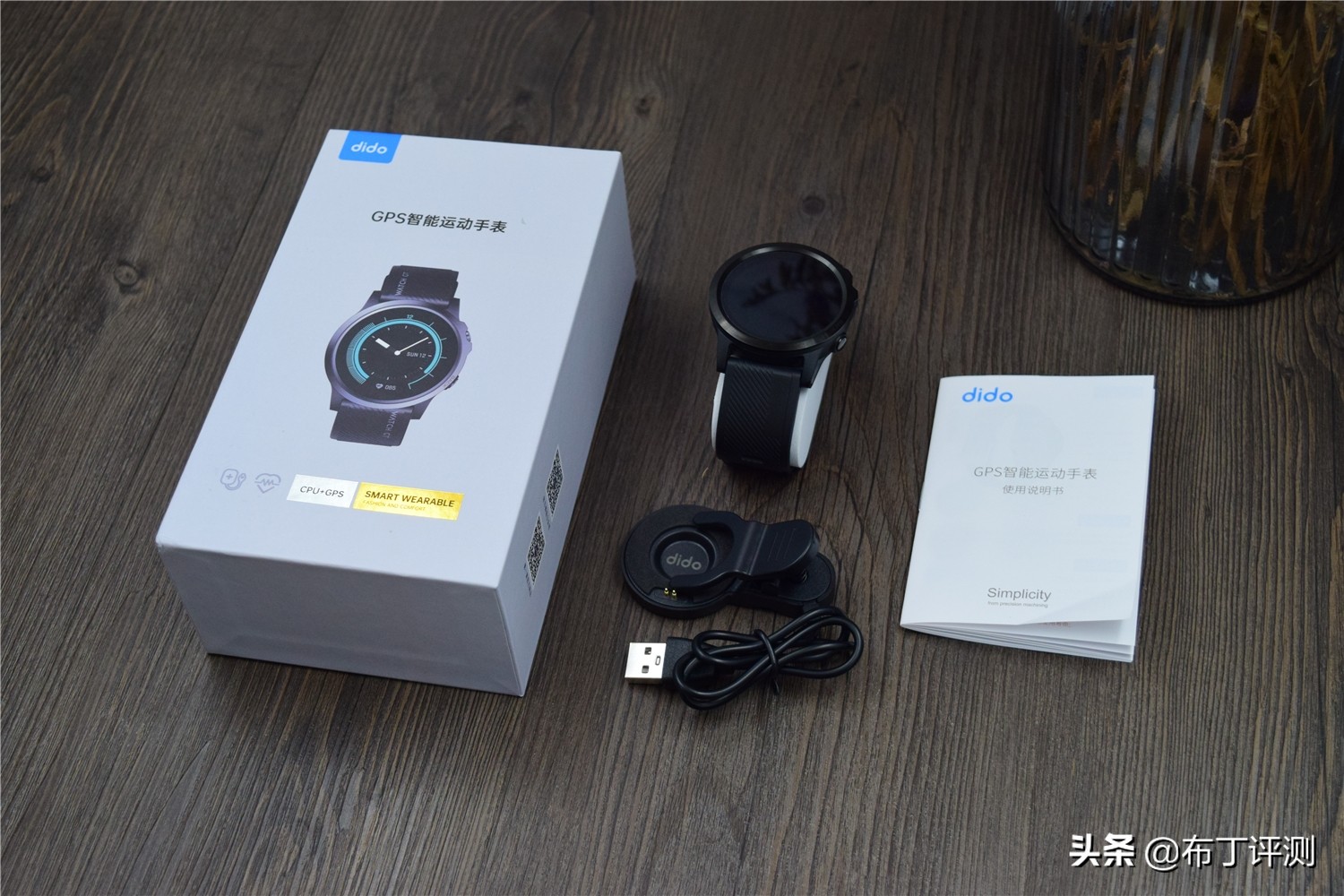 dido S3 Pro的包装盒设计精致简约,正面印有产品实物图片和名称,其中“GPS智能运动手表”字样,表示这款支持GPS定位的手表,背面是关于产品的参数介绍。