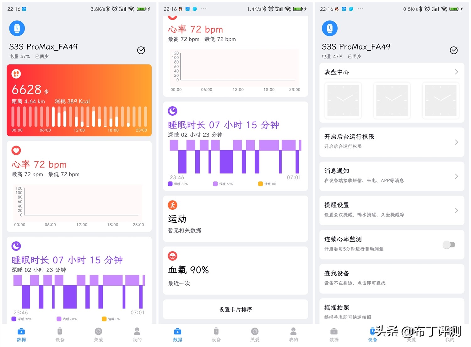 dido S3 Pro相比很多其他智能手表,给我最大的感受就是手表的独立使用性很强,可以完全脱离手机APP使用。其中手表的主界面能显示时间、日期、心率和步数等信息,而且在主界面长按还能手动切换主表盘,不过目前仅内置了3款主表盘,稍微有点少。
