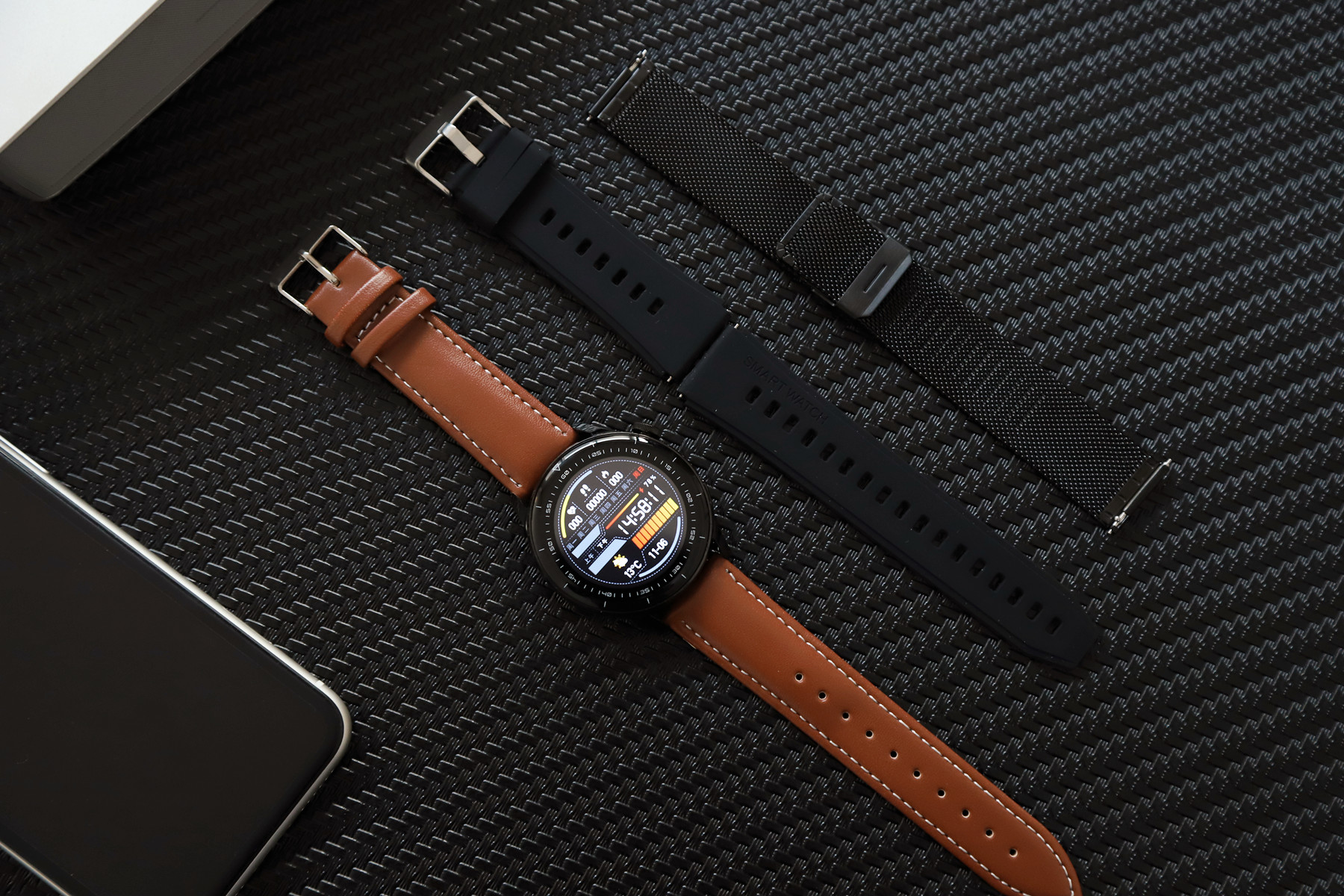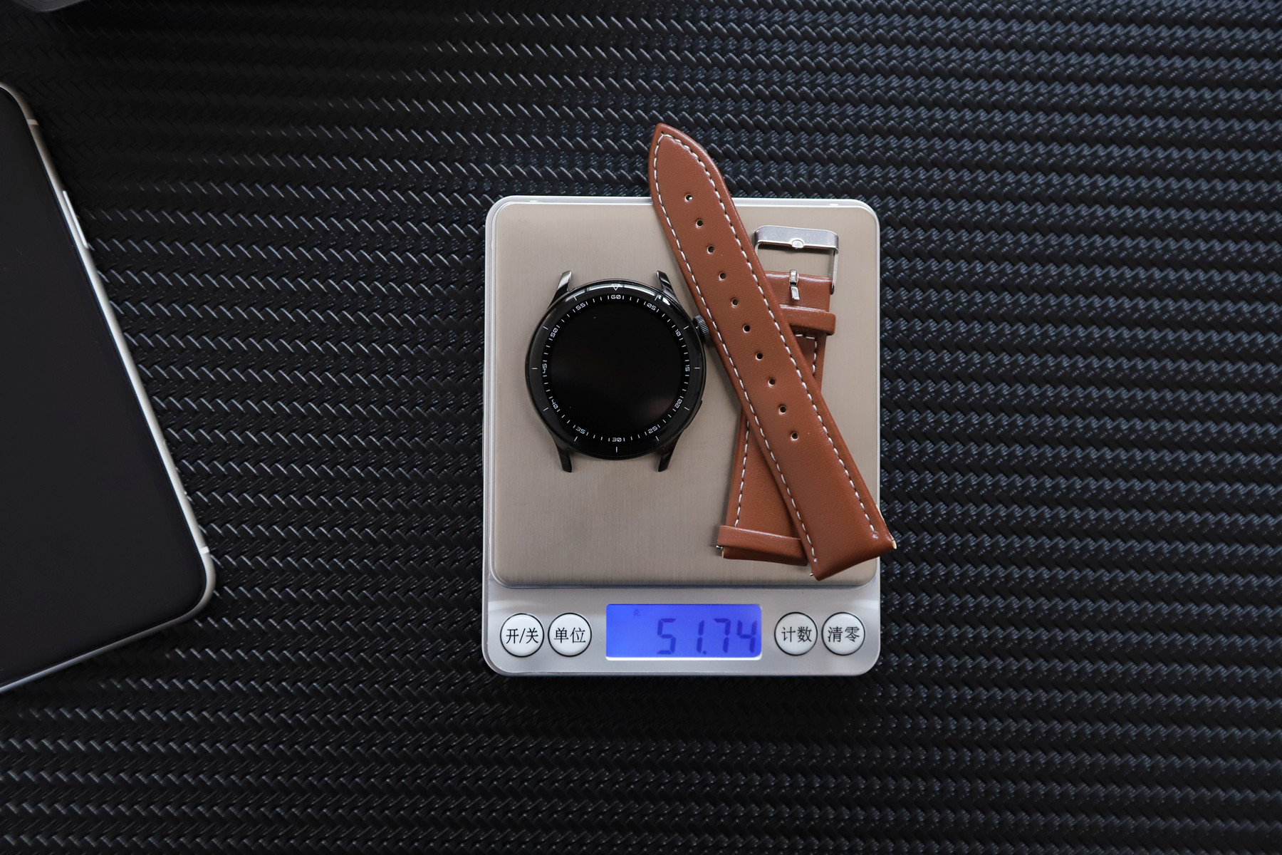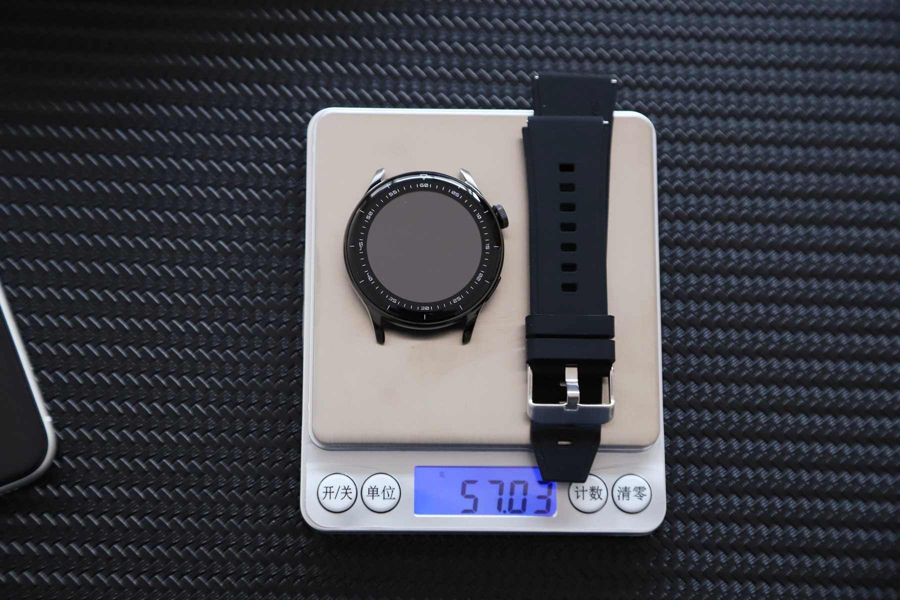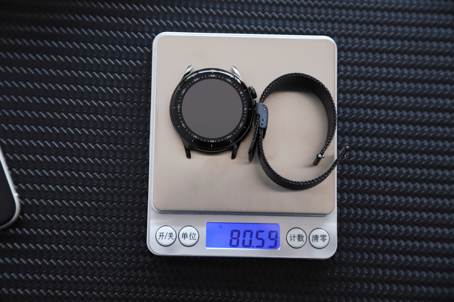 这是加各种表带后的整体重量。皮带最轻,整体大约52g,黑色磁吸钢带较重大约81g。论佩戴感的话,硅胶表带佩戴轻盈舒适,健身运动更适合。钢带更有分量,商务类用途表现会更好(相亲?)。