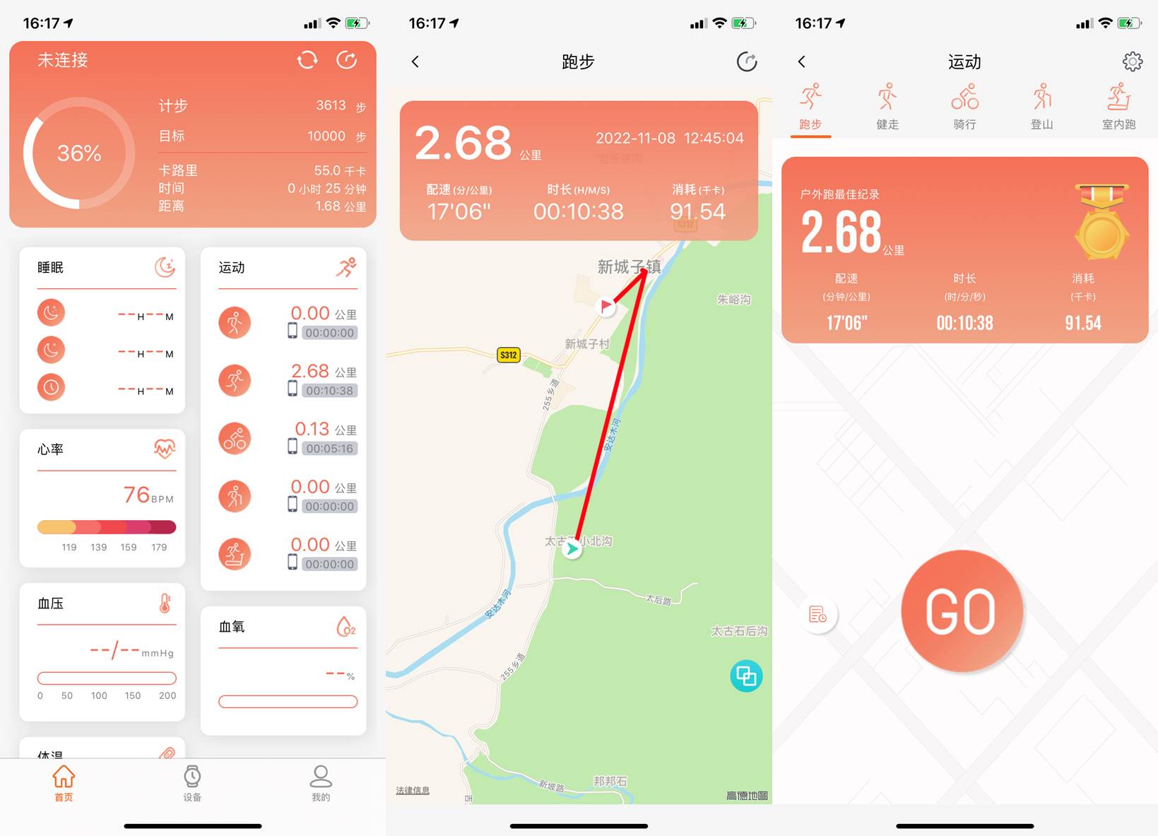 这里也对运动功能进行了一下较久的体验,可以记录运动时长和强度,对运动轨迹进行简单的绘制。常用的心率功能也进行了测试,整体感觉数据作为参考还是可以的,不过达不到十分准确的程度。另外比如支付宝、钱包、计算器、音乐、天气等基本功能也都有,测试也都没啥太大问题。
