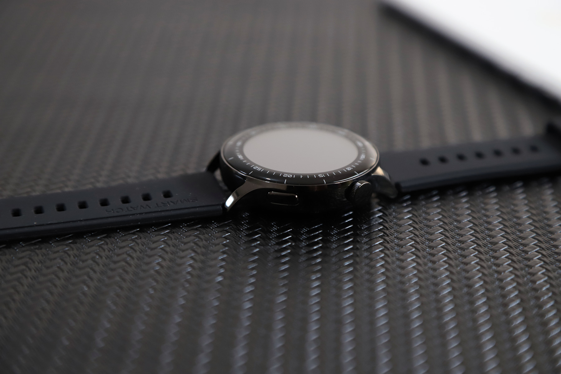 手表右侧设计有机械旋钮和手表开关物理按键。