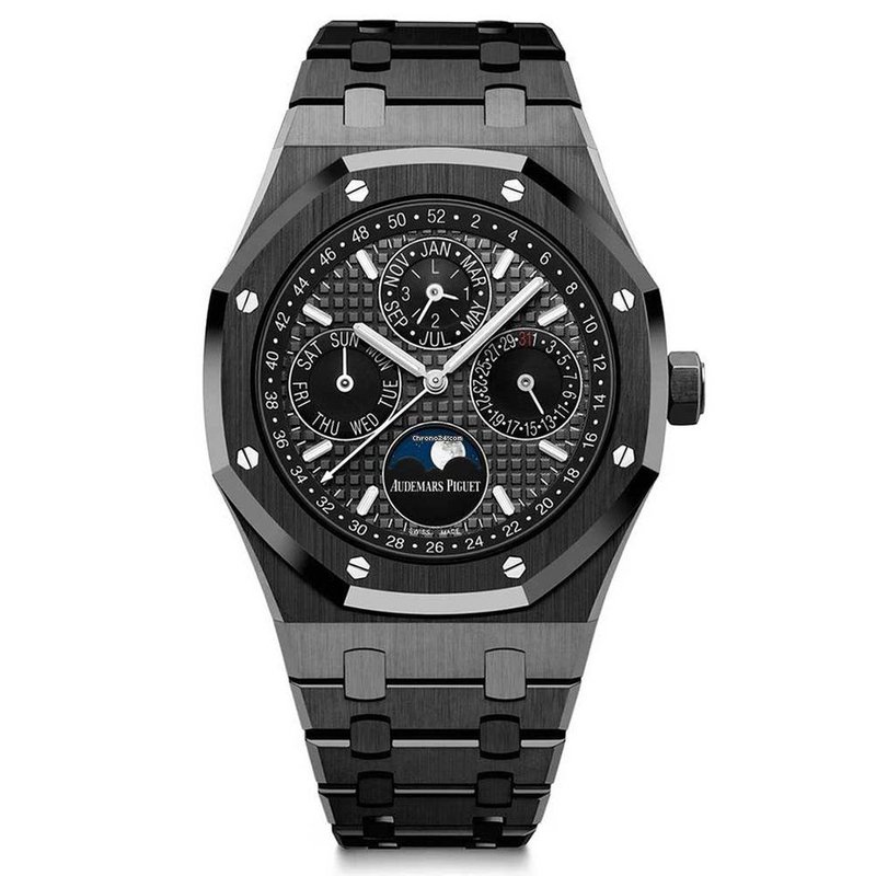 在爱彼皇家橡树推出40多年来,很早就使用了陶瓷制造表壳,由钢,黄金,铂金和锻造碳制成的表壳几乎被运用到在世界上所有类型的复杂时计上,但是却没有同时在表圈和表链上使用过,也是这种新颖的尝试,使得这款皇家橡树万年历脱颖而出。