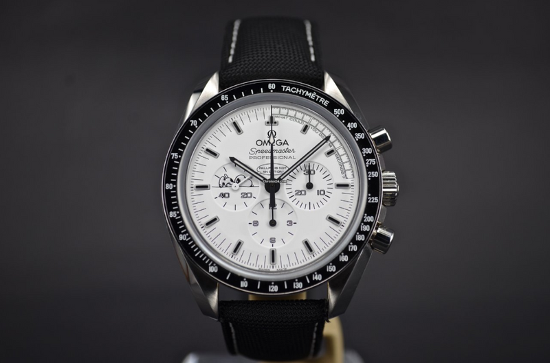 这款 OMEGA 腕表是为了纪念阿波罗13号任务45周年,当时由于意外,宇航员在太空被迫需要返航,在这危难时刻多亏了 OMEGA 超霸计时表的14 秒精准计时,因此成为传奇功勋,当时美国的NASA 还向OMEGA 版布了「 史努比奖」Silver snoopy Award ,当时可以说是轰动一时。