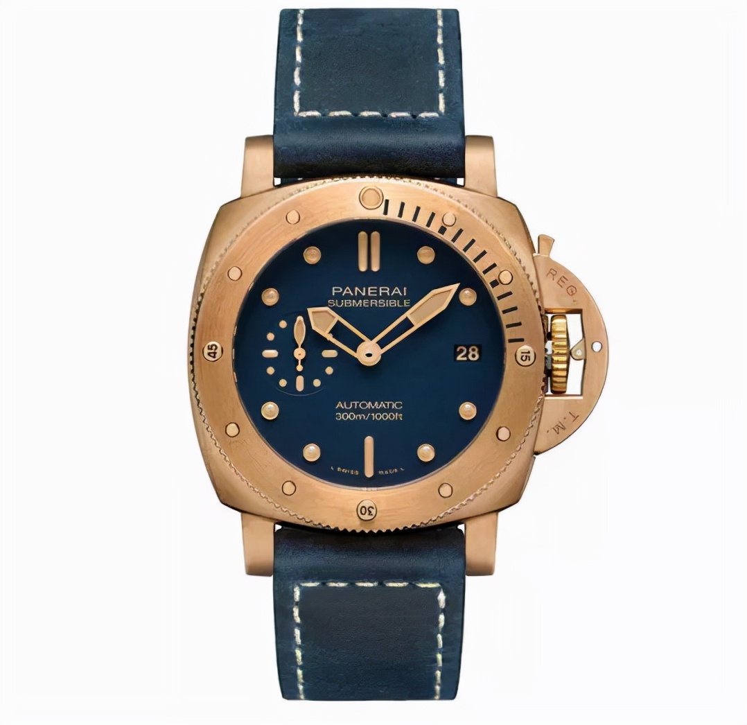 这是一枚沛纳海SUBMERSIBLE系列PAM01074腕表,这枚腕表搭载自动机械机芯,表壳为青铜材质,复古绒面皮表带,配衬淡褐色缝线(另配一根蓝色橡胶表带),具有日期显示功能,表径42毫米,防水300米,参考价格121500元(以实际价格为准)。