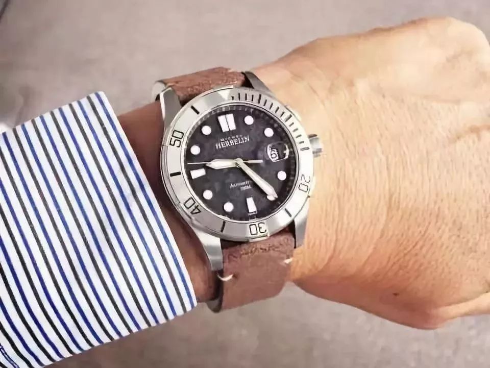 赫柏林作为法国国民手表品牌,一直致力打造极具绅士优雅的手表。而这款领航者系列手表不仅延续了法国的浪漫风格,还保留了瑞士的精细做工。该款手表采用经典潜水表设计,简约大气的大三针历久弥新,搭配深棕色表带不仅提升你的气质品味,还流露出硬朗之感。