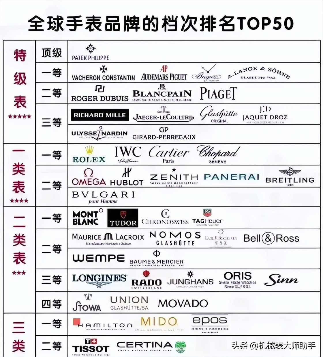 初次接触手表的朋友都非常在乎手表的等级排名,因为手表品牌众多,能够经久不衰的品牌都是经过了时间验证的。选择一个等级排名靠前的品牌,不但能够节约时间成本,还能少走很多弯路,并且手表戴着也有面子。