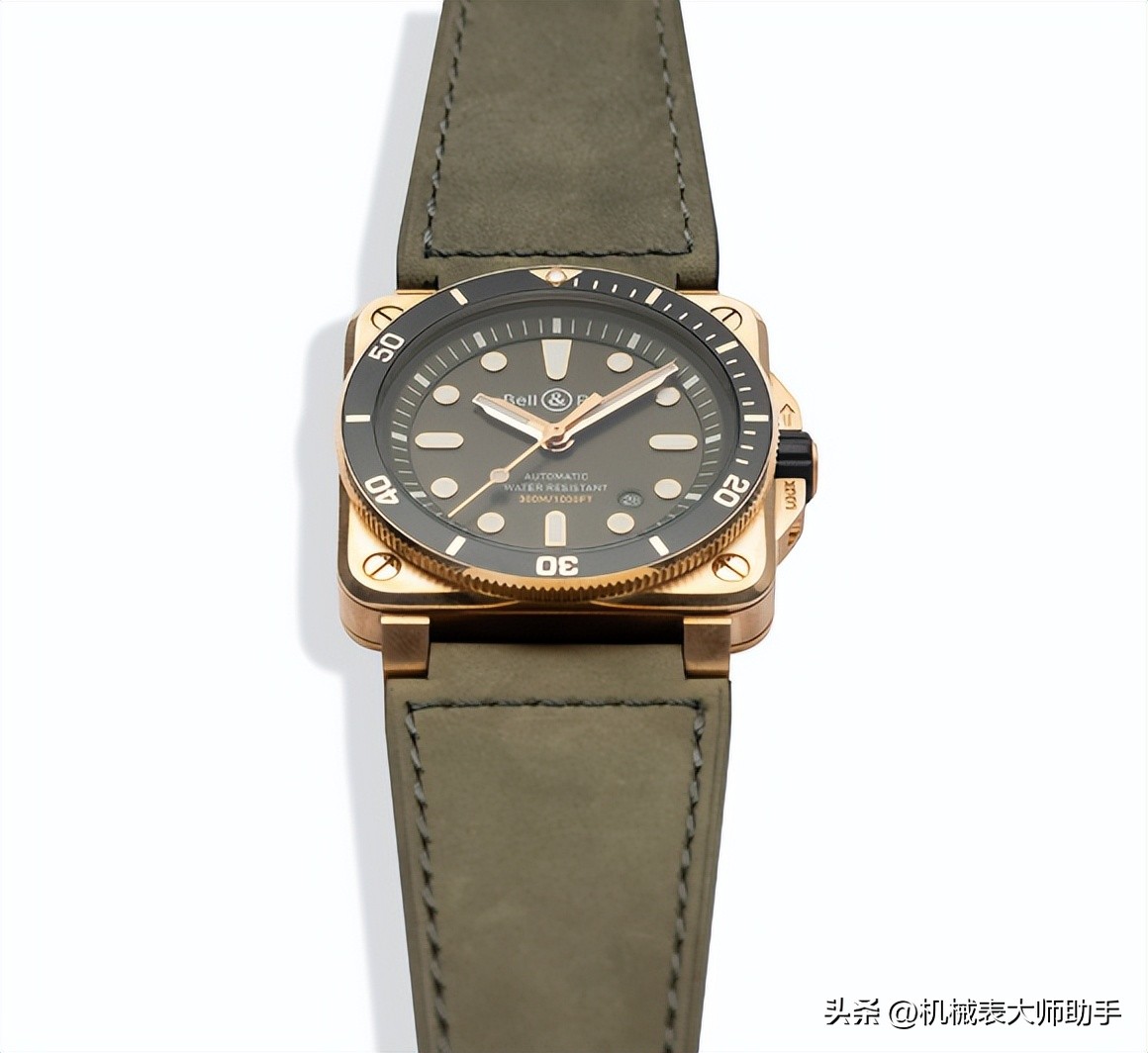 柏莱士的等级高于浪琴,和帝舵属于同级别的品牌。它的表壳是方形的但却又保持了圆形表盘和圈口。表盘的设计灵感来源于飞机仪表盘,满满的军表气息。底盖上能够看到深海潜水员图案,强化腕表的潜水属性。青铜材质表壳可玩性很高,非常具有特色。