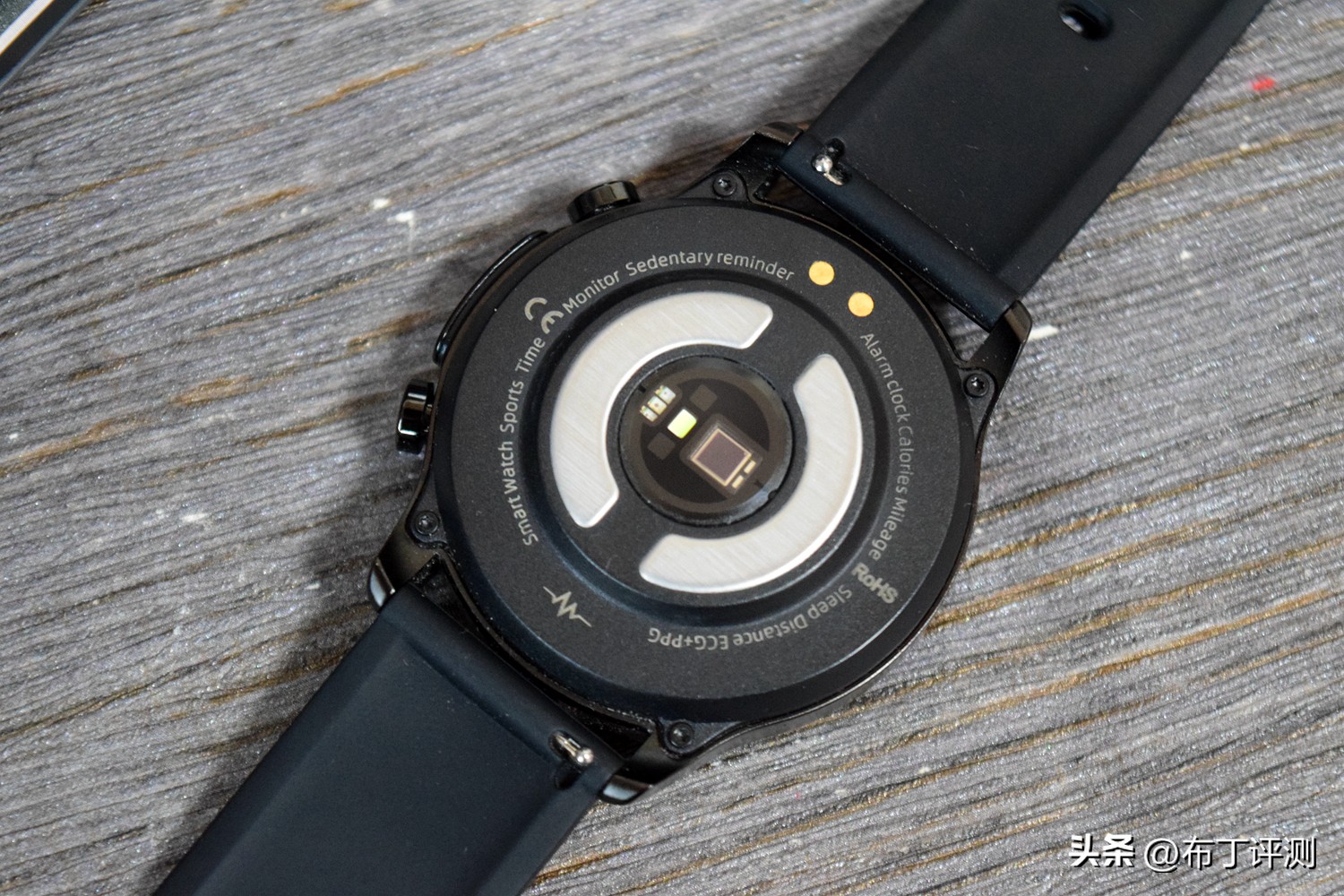 dido E55S PRO健康监测手表的背面才是手表的特别之处,在中间位置密集放置着各种传感器,上方是充电触点,两侧银色的金属片是电极片和温感,通过心率融合技术、血压静脉算法、心电毫米波算法等技术,可以实现心率、血压、血氧、血糖变化趋势跟踪等健康数据进行测量。