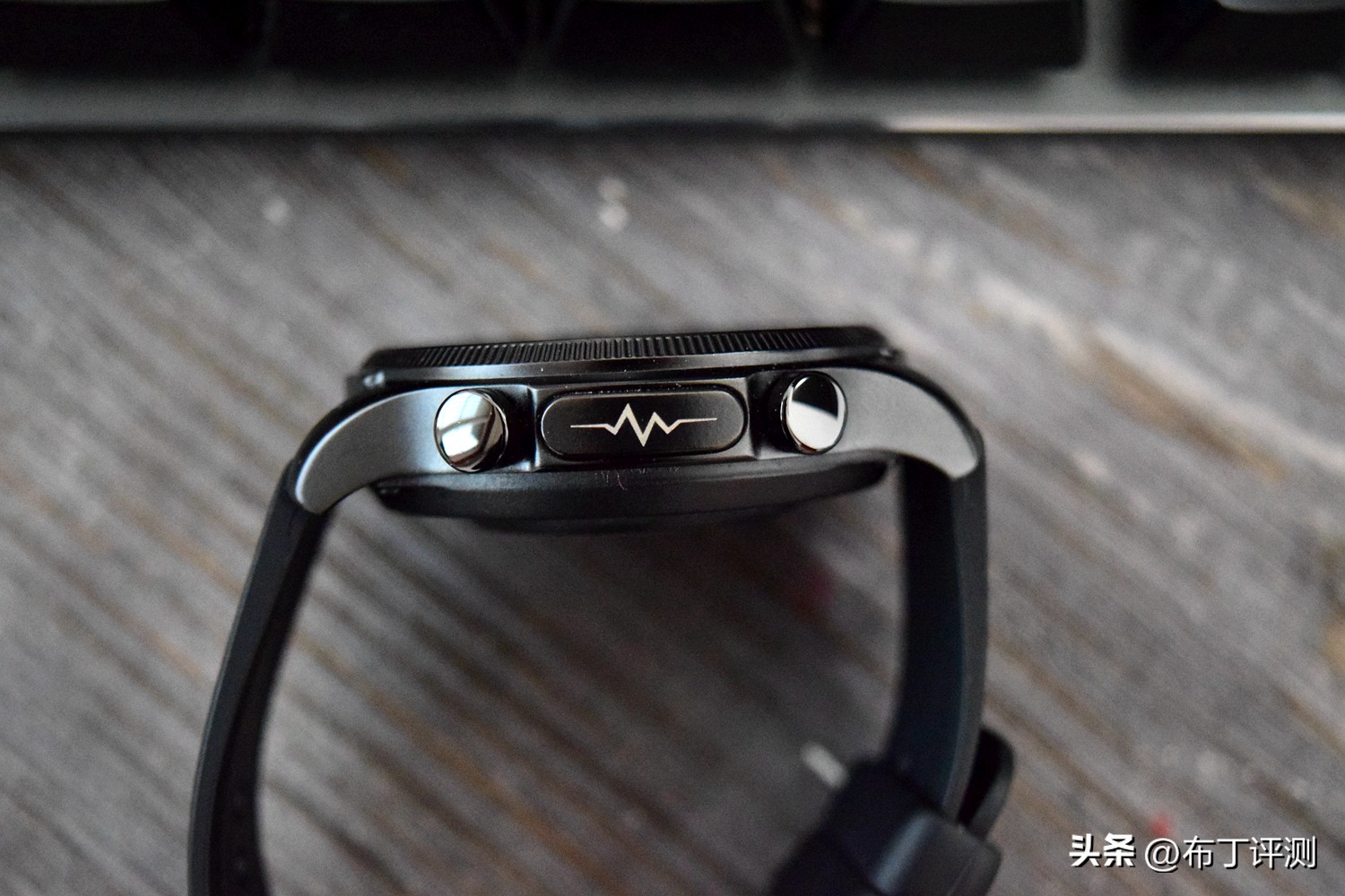 手表的按键被集中放置在了机身右侧,其中上下两端各有一个圆形实体按键,短按上侧按键为唤醒/关闭屏幕,长按可实现开关机功能;熄屏状态下短按下侧按键是唤醒屏幕,亮屏状态下是进入菜单功能界面/返回主界面。另外在两个按键之间的是电极键,在进行心电测试时需要用到。