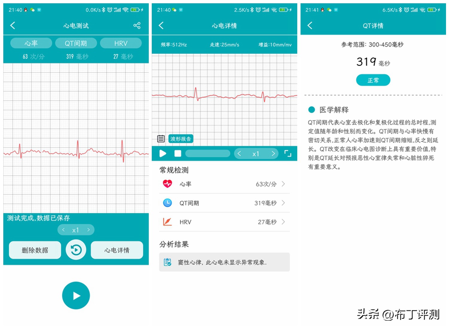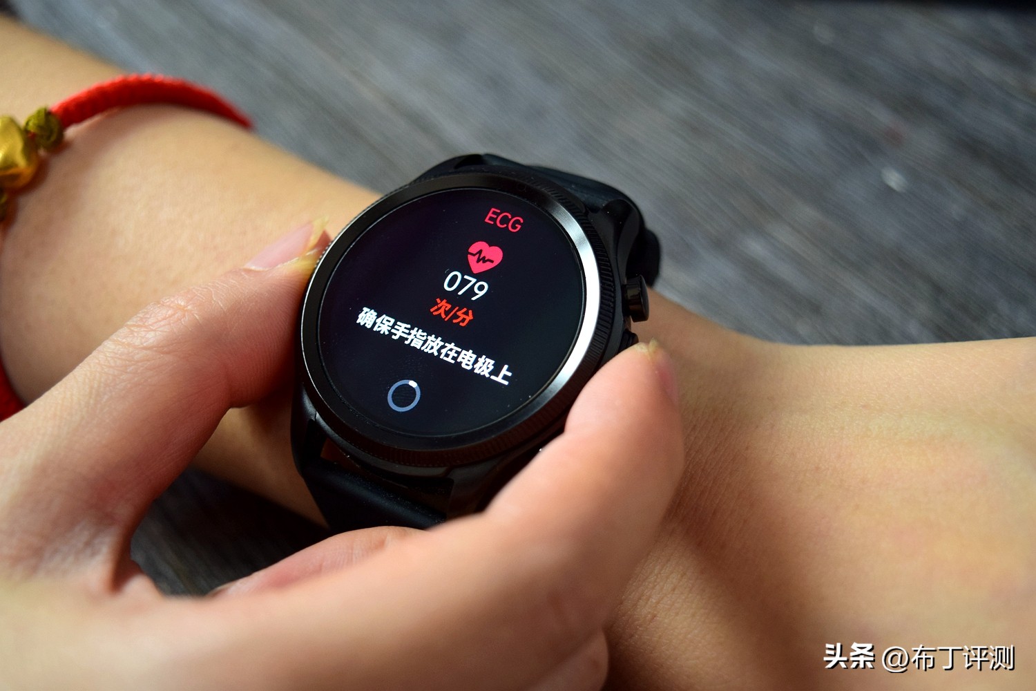 测量时需要用手指按压侧面的电极片,并让手表底部电极片紧贴皮肤,只需不到1分钟就能完成心电图检测,检测完成后形成波形报告,并给出分析结果便于用户查看,可以帮助用户随时了解心脏健康。