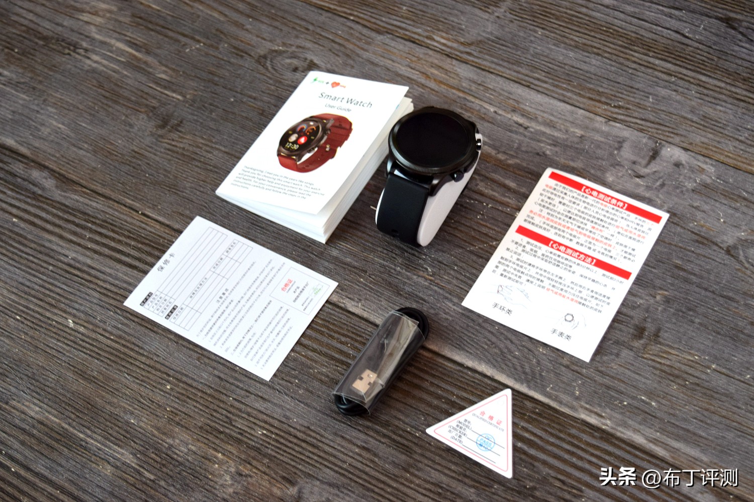 包装方面略过,其中盒内的物品比较简,除了dido E55S PRO健康监测手表和磁吸充电线,还有使用说明、保修卡、合格证和心电测试卡片。