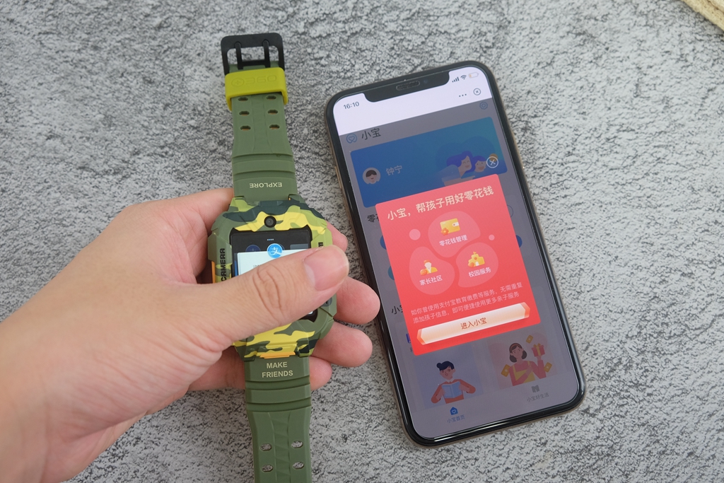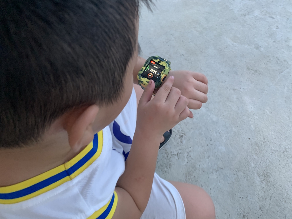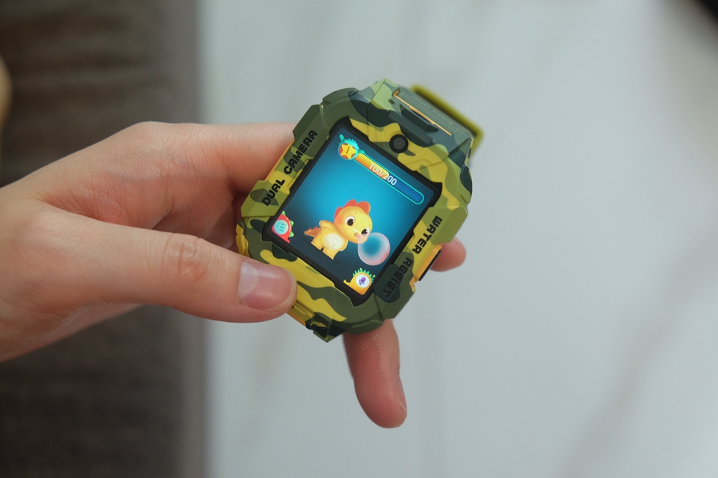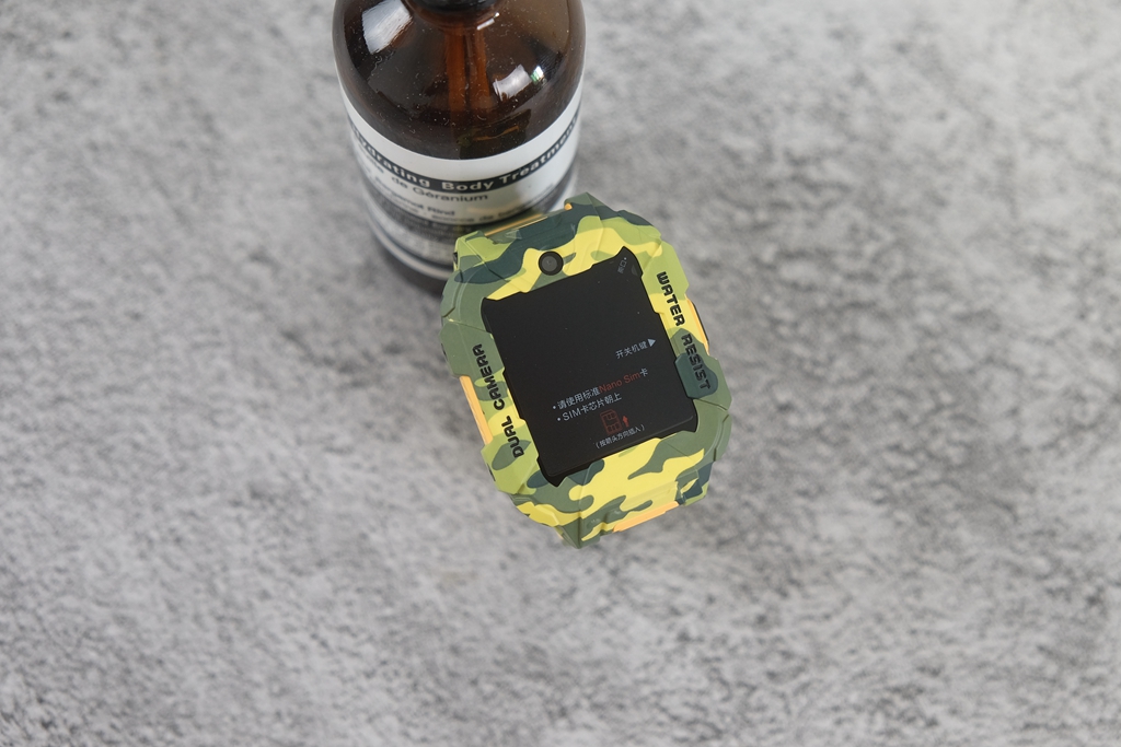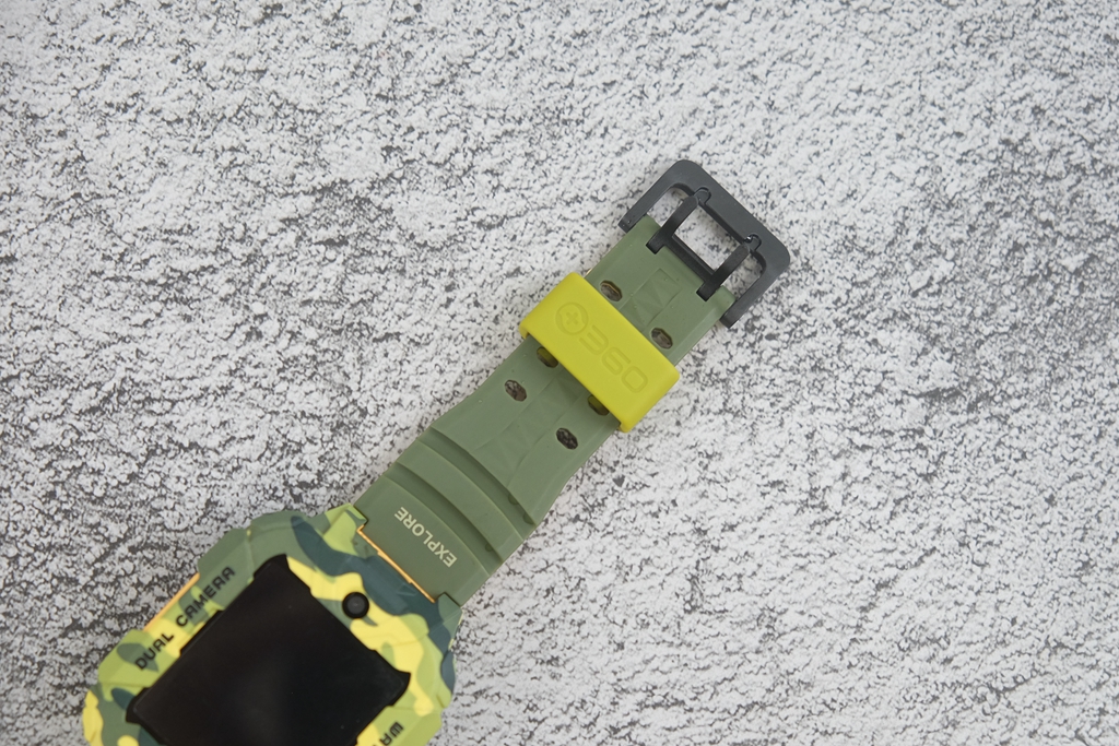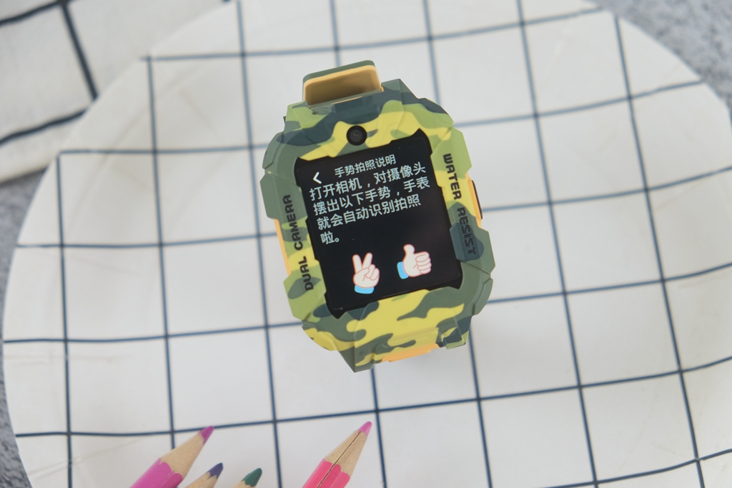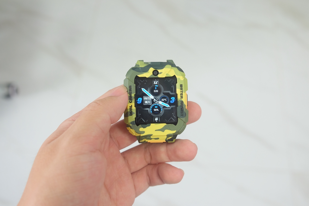 有一些细节,通过图片或是渲染图很难察觉到,只有真的拿到手表真机,才能发现出这种改进。一般的儿童手表都会直接采用方正设计,而它则采用上下两边切平,中间平滑切面贯穿上下设计。直白地说,可以给屏幕起到更好地保护作用,同时增加了凌厉视效,也让迷彩的辨识度提升,确实是一个很不错的改进。