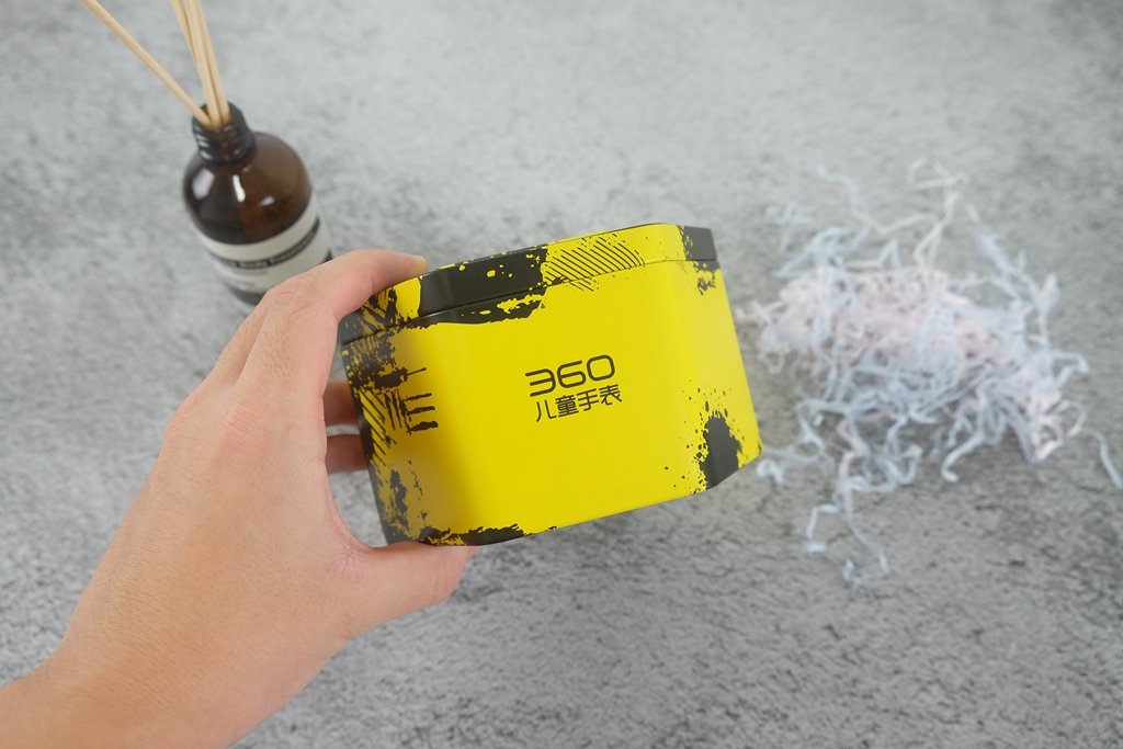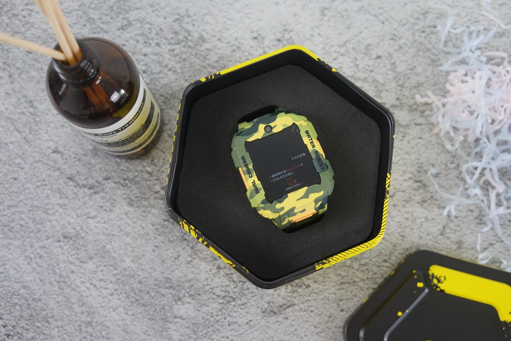 刚拿到360儿童手表S2的包装时,就让孩子大吃一惊了。这外观也太高级了,看起来就和名贵手表一样,好有艺术感。这是孩子的原话,我的看法也与他一致,确实这包装盒就能给这款手表加分了,迷彩铁盒,正好对应手表的迷彩外观设计。