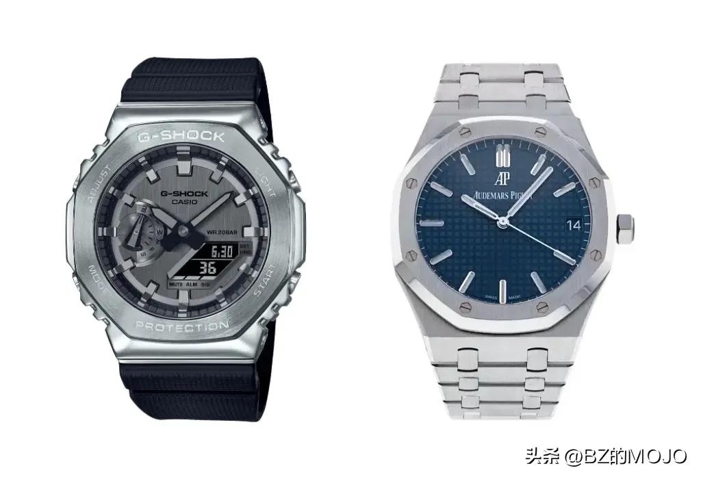 这不是直接的复制,它确实有自己独特的特征,所以我们不会拿这种相似性来说事儿。与价值2万美元的皇家橡树不同,这款G Shock手表吹嘘有计时器、秒表、背光灯和深达200米的防水性。