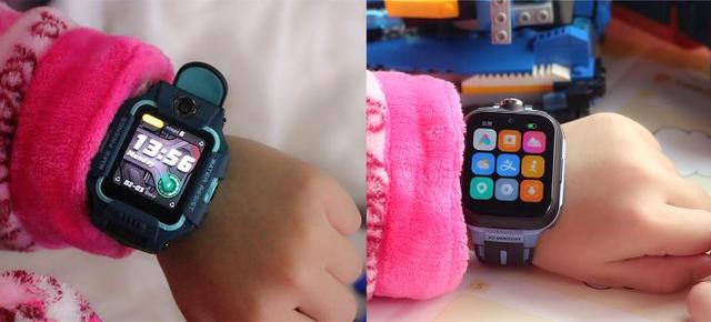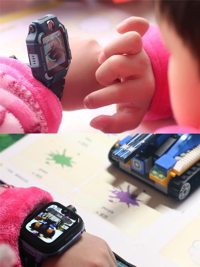 两款手表实际佩戴上手后的效果,从界面上来看,水滴全面屏的显现效果会更加好一些 ,当然小天才整体的机械风格对于小男孩而言,也还是很酷的。