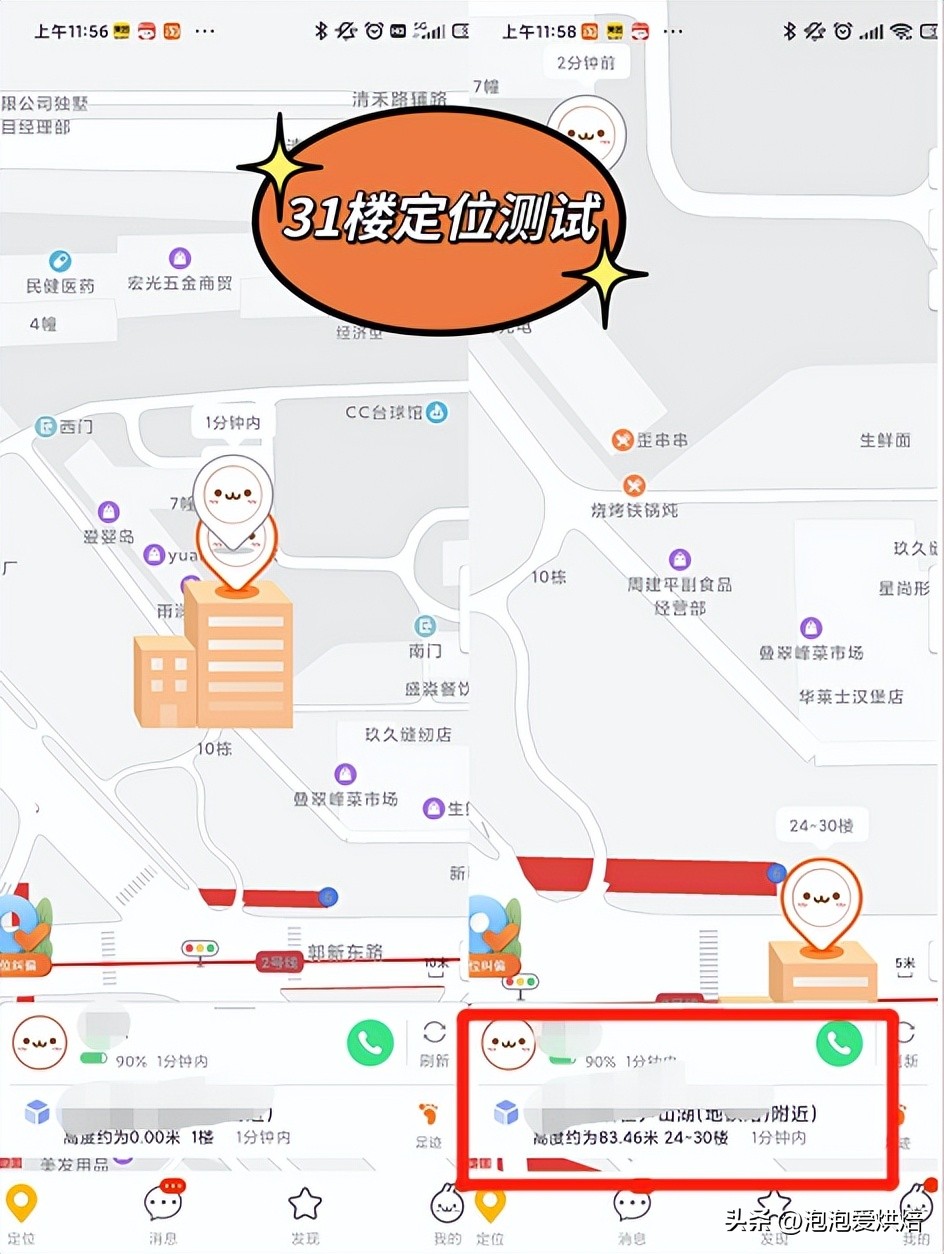 测试下小区的定位,我们住在31楼,手表定位是在24-30楼,虽然有些误差,但已经比市面上很多不能定位的儿童手表好太多。