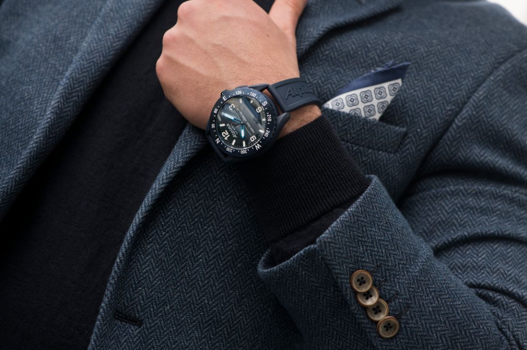这款海岸线系列采用钛金属表壳,这种材质多应用于航空和医用支架,不仅坚固轻盈,还能有效防止过敏,简直就是易敏感体质的“救星”。深蓝色表盘代表了海洋元素,这也呼应了系列名称,延续出色的军用计时标准,任何情况下都能有出彩表现。