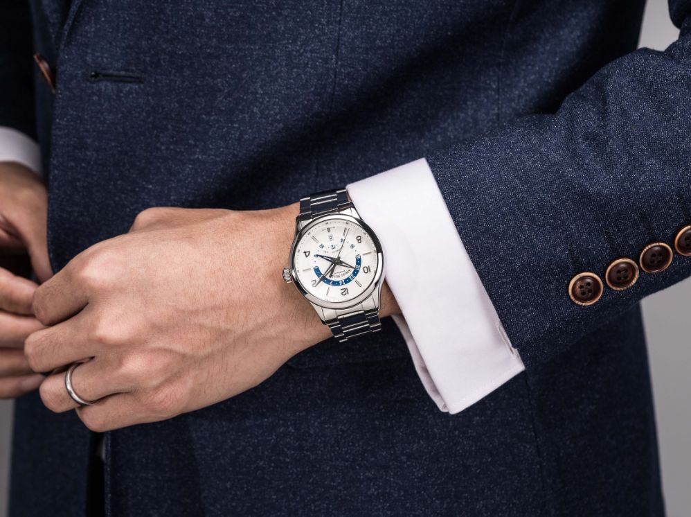 立体阿拉伯数字时标和镂空指针的搭配相得益彰,蓝色GMT指针使佩戴者更清晰地分辨两地时间。表底饰以扭索纹,透过蓝宝石玻璃表镜便可感受时光的跳跃。GMT两地时功能的设置,满足了不少商旅人士的需求,无论身处何地,都能提供精准时刻。