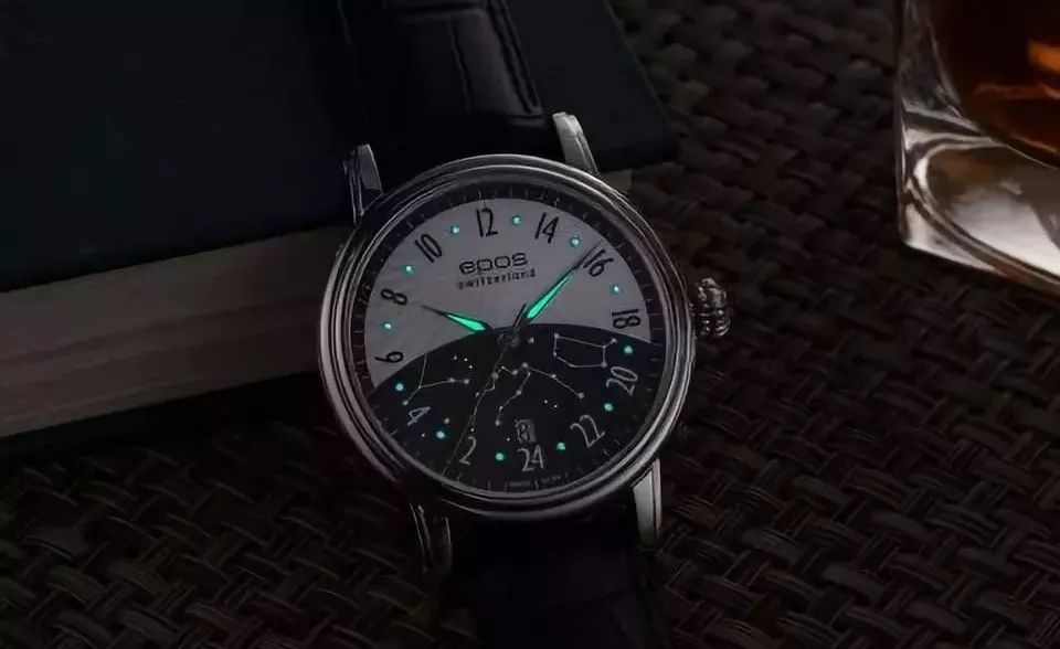 “日月无间”顾名思义就是将昼夜掌握在手中,这枚腕表采用独家24小时盘面设计,以黑白分区的对比,区分白天和黑夜。白天部分饰以太阳放射纹,以呈现日间的凌厉,而黑夜区域饰有夜光星座图案。