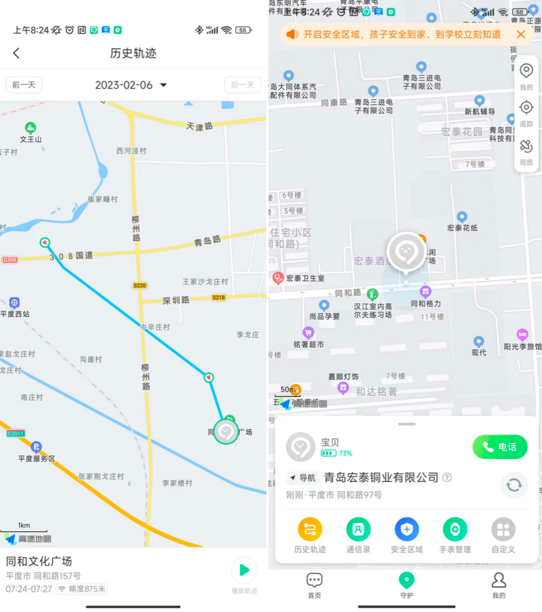 以上的方面呢,属于隐私保护方面的安全性,接下来还有一个很重要的安全性功能,就是定位,高精确度的定位,能够随时清楚地知道孩子在哪里。