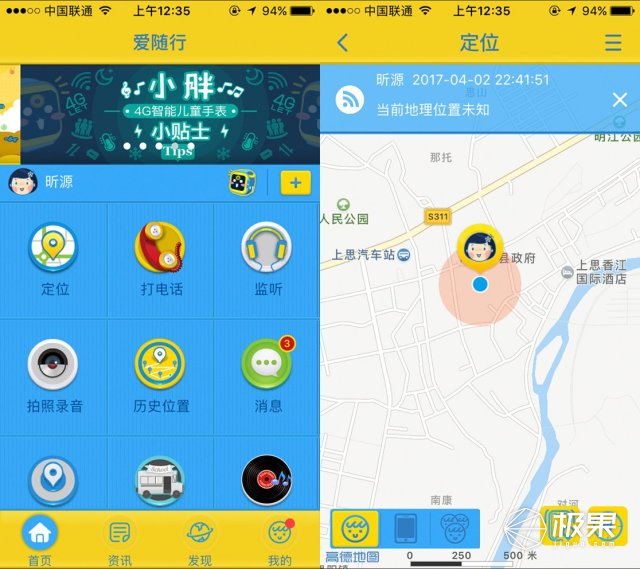家长通过App端除了可以精准了解孩子的所在位置外,还能实现打电话、监听、电子栅栏、历史位置等多种安全措施。值得一提的是,当小胖开机或者关机,孩子走出安全栅栏时,爱随行APP都会有信息推送,或者直接发短信到家长的手机,并附带定位信息。若是孩子拨打求助电话,而家长漏接的话,小胖也会进行循环拨打亲情电话,并发送短信通知。可以说,阿巴町在安全细节上还是相当到位的。