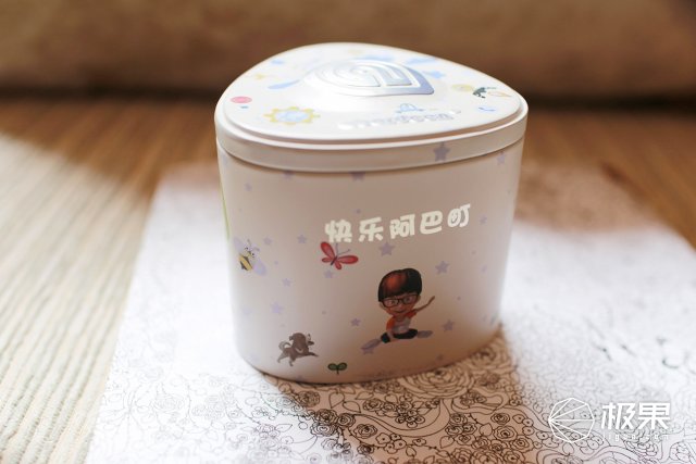 阿巴町小胖的包装风格相当讨喜,无论是字体还是包装风格都具有童趣十足的卡通风。打开外包装后,一个精致的铁质盒子就呈现在眼前,盒上面绘制了很多卡通图案,如此萌萌哒的风格,小孩子一定会很喜欢。