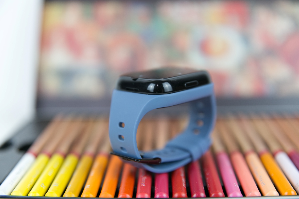 表壳采用了黑色亮光材质,柔和无棱角,孩子而言安全性更高,整体做工、质感不错。