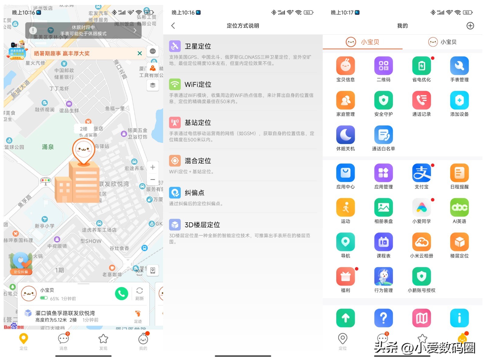 米兔6X儿童手表支持GPS+北斗+基站+Wi-Fi+AGPS+陀螺仪+重力感应+地磁+气压计+AI定位+室内定位+拍摄辅助一共12重定位模式。这么多重安全守护,家长也能更安心。尤其是3D立体楼层定位,不管是在学校里还是小区里,有了这个功能,能清楚知道孩子在哪个楼层,也就更放心了。实际使用中这个楼层算法精准度还挺高,几乎没有偏差。