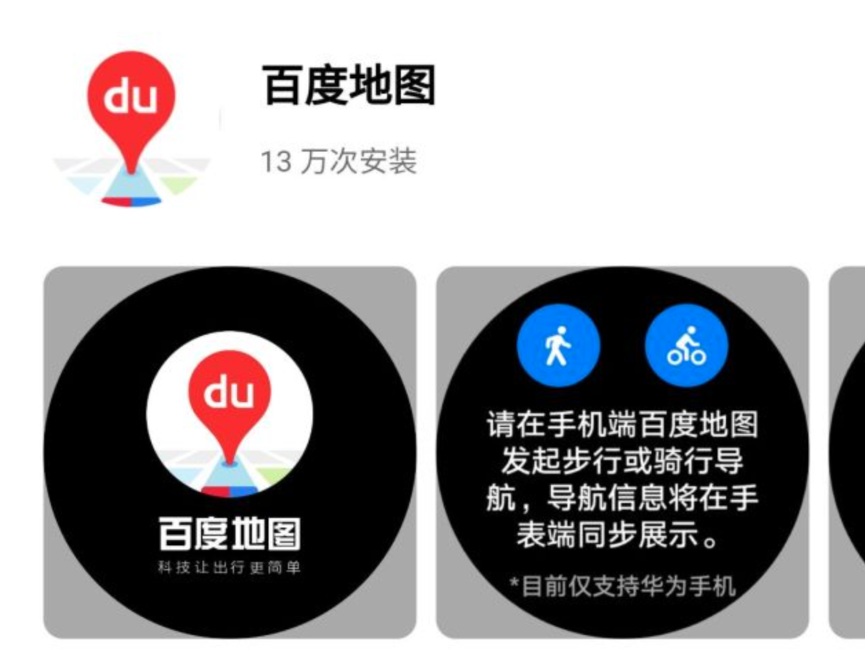 高德地图的对手百度地图,此前也推出过智能手表版。华为智能手表WATCH GT2 Pro发布时,百度地图是一个完成适配的厂商。