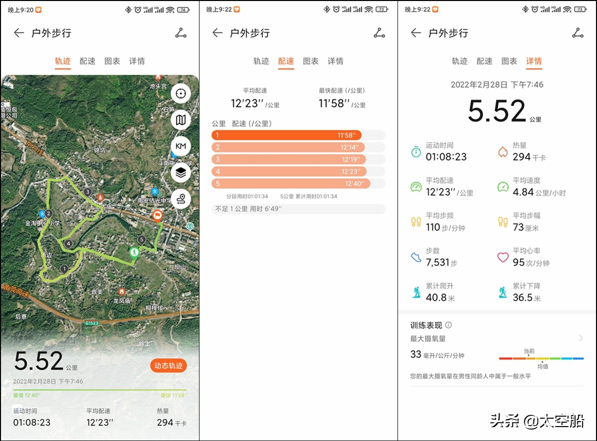 通过运动健康APP可以查看运动的历史记录,详细的轨迹、配速、图表和详情等数据可以让用户更清楚的了解每次运动的情况和效果。笔者个人很喜欢它的动态轨迹功能,可以选择卫星地图作为背景,生成的视频还能进行分享和个性化设置。