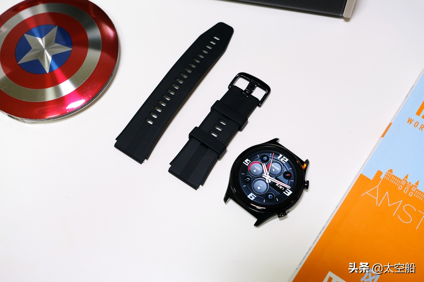 因为表带是采用可拆卸设计,所以如果想换个材质或颜色的表带也是很简单的事,荣耀商城现在也推出了蓝色和浅灰色的氟橡胶表带,相信很快也会出现真皮表带配件。