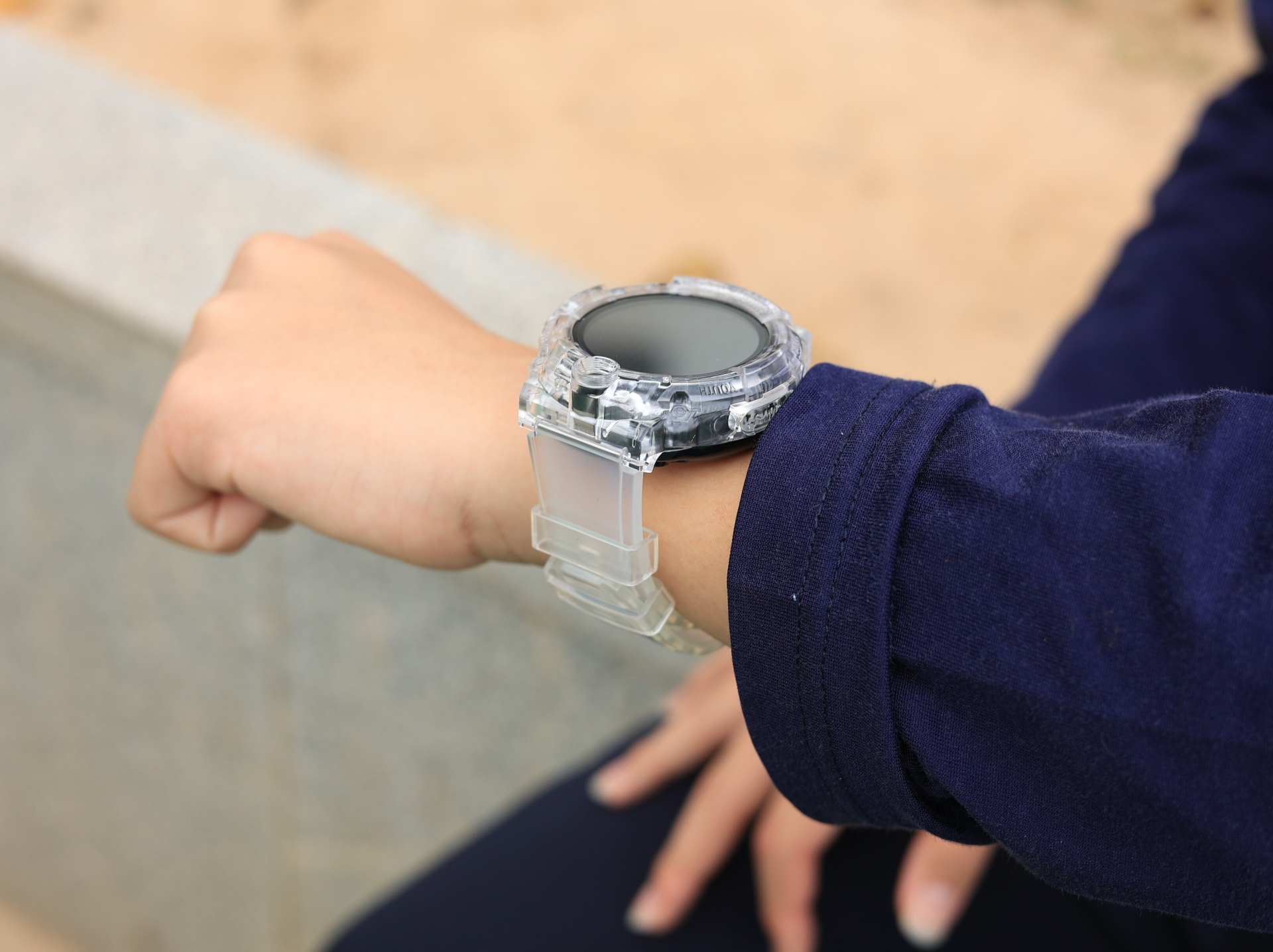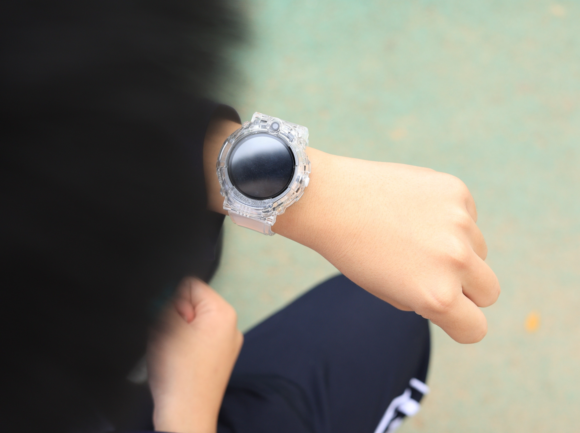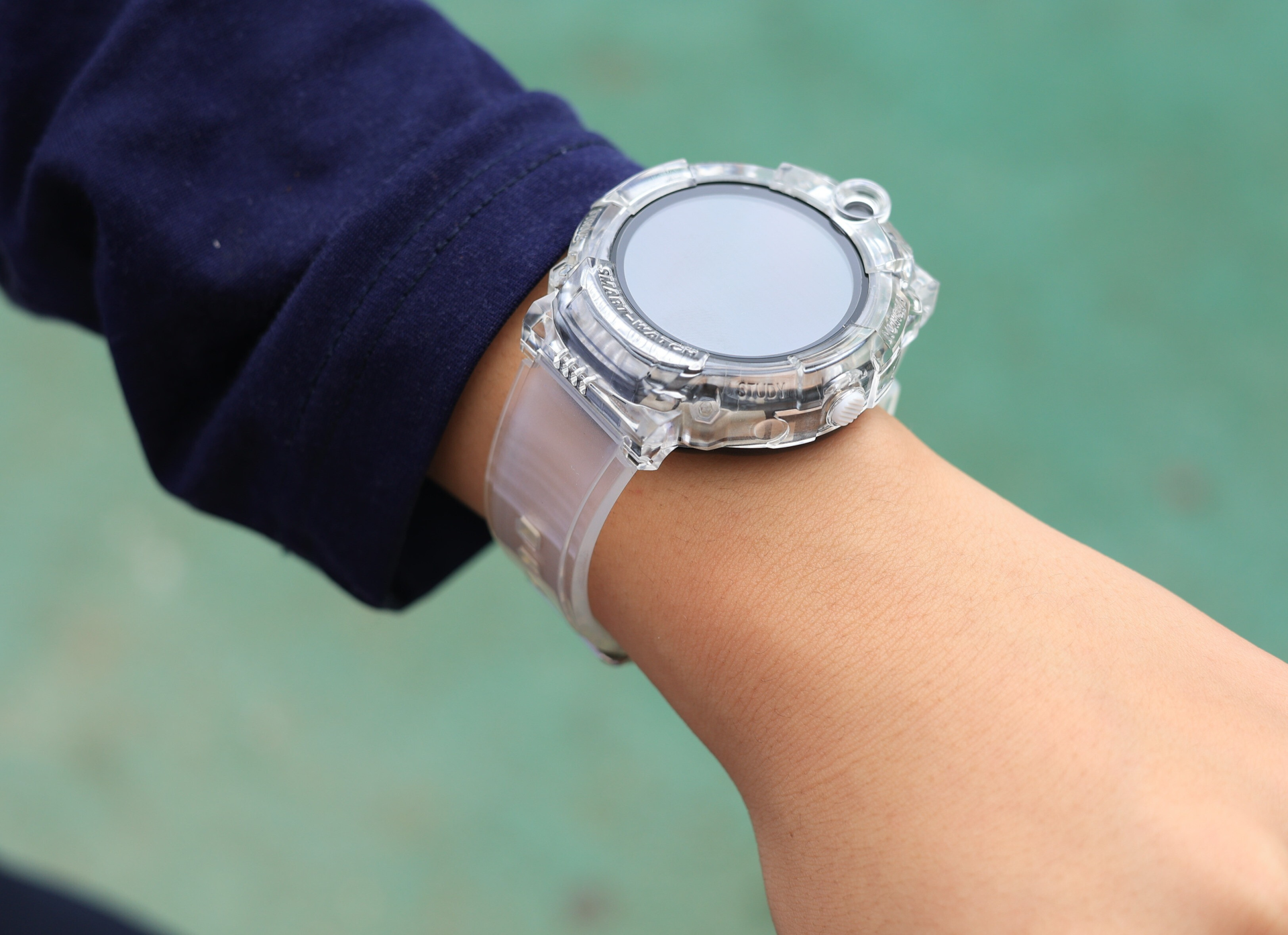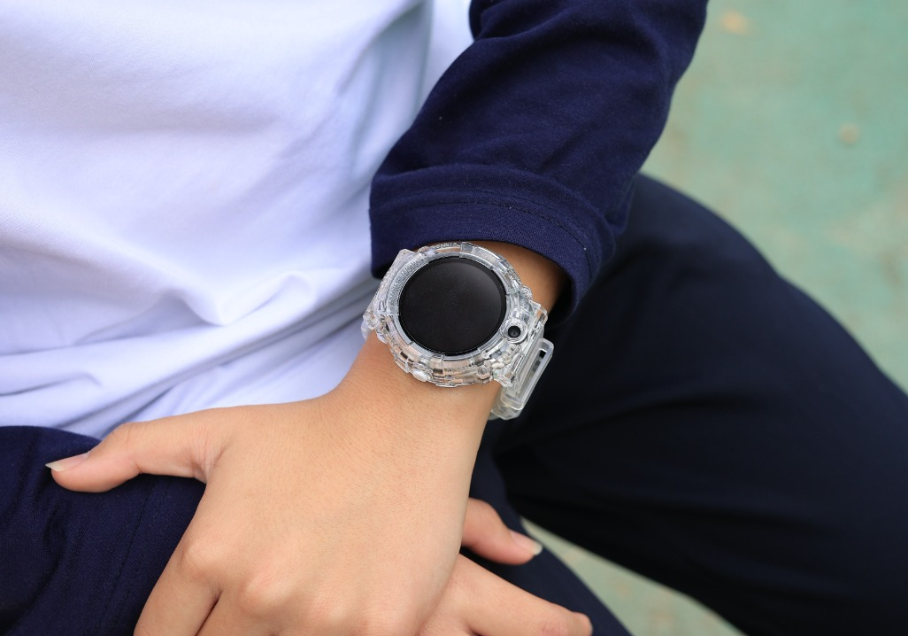 回到今天的主角,这款的dido Y39儿童智能手表,它整体的设计显得尤为亮眼,透明的机身简约大方,结合1.28寸高清显示屏搭配上,看起来高档又美观,科技范十足!它的表带是磨砂质感的,戴在手上不仅舒服,还能够呈现腕表的骨感线条!与此同时,它还是全封闭式防水结构的,日常洗手无需摘下,就连突然下小雨了也不用担心!