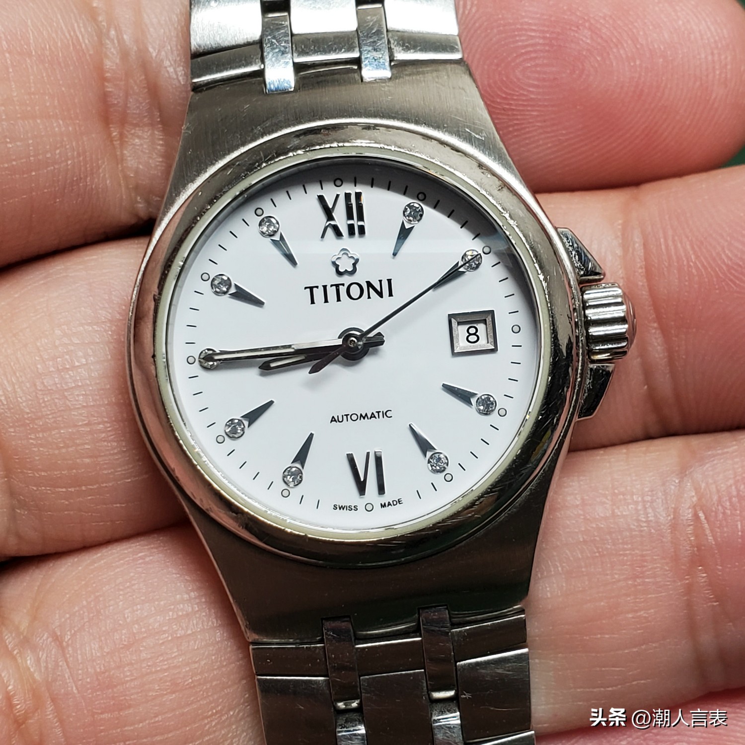 这块梅花手表由表友寄来保养,内部表盘完好,机芯漂亮,只是表壳和表链有一些日常磨损造成的划痕。
