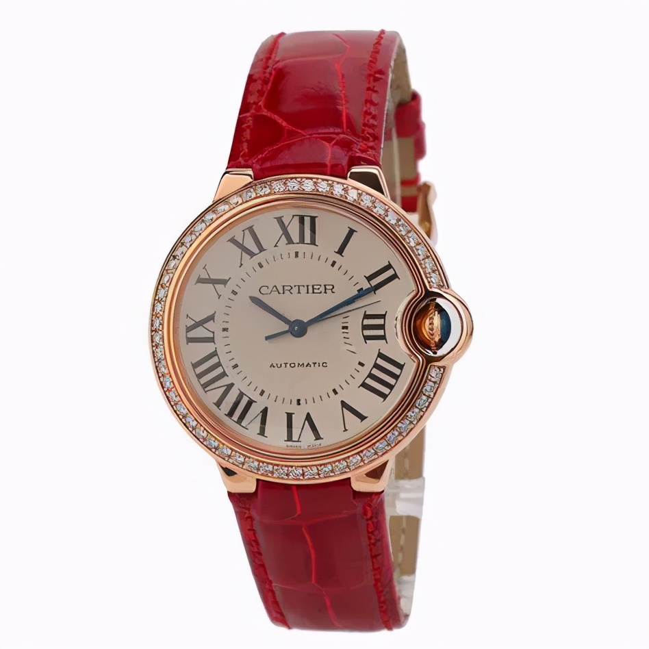 这是一枚卡地亚蓝气球系列WJBB0034腕表,这枚腕表搭载自动机械机芯,表壳为18k玫瑰金材质,表圈镶钻,18k玫瑰金表冠上镶嵌一颗凸圆形蓝宝石,鳄鱼皮表带,表径36毫米,防水30米,参考价格173000元(以实际价格为准)。