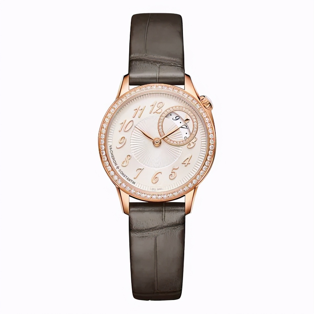 这是一枚江诗丹顿伊灵女神系列1205F/000R-B622腕表,这枚腕表搭载石英机芯,表壳为18K粉红金材质,表圈镶钻,鳄鱼皮表带,具有日期显示功能,表径30毫米,防水30米,参考价格151000元(以实际价格为准)。